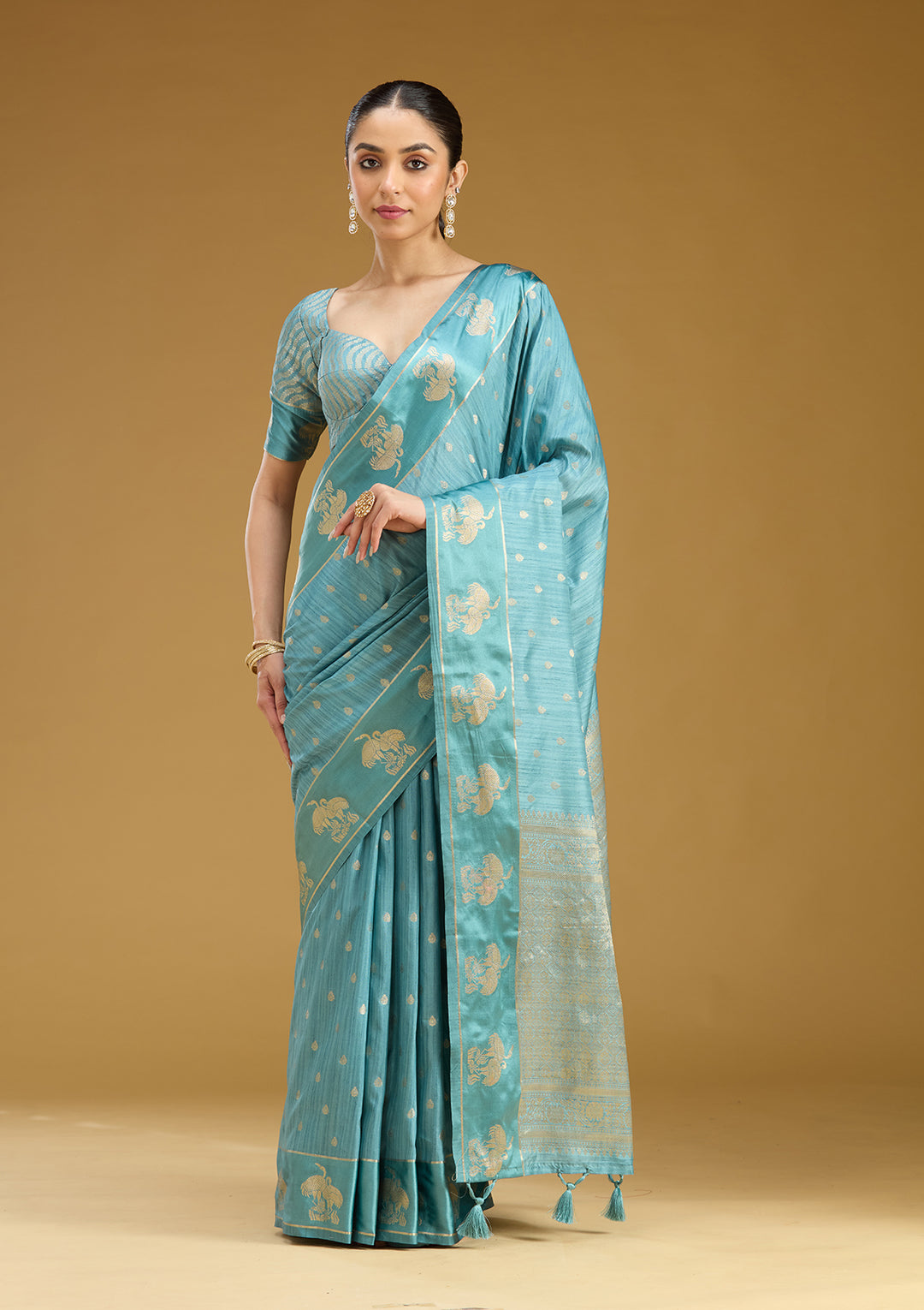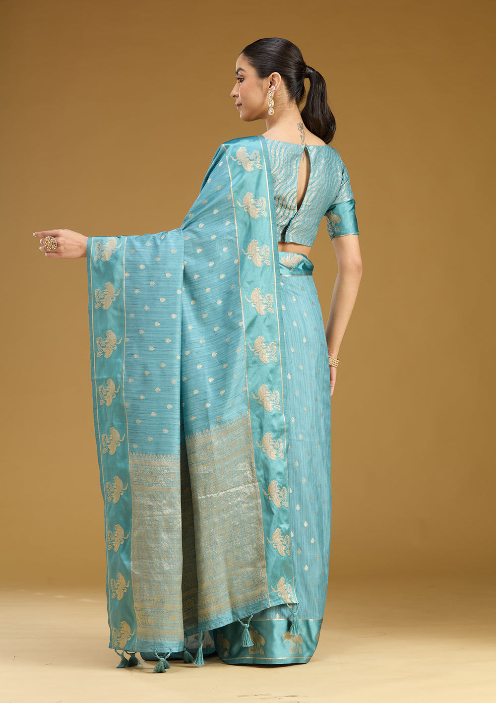 | Sky Blue Zariwork (Gold) Art Silk Saree | $89.00 USD | |