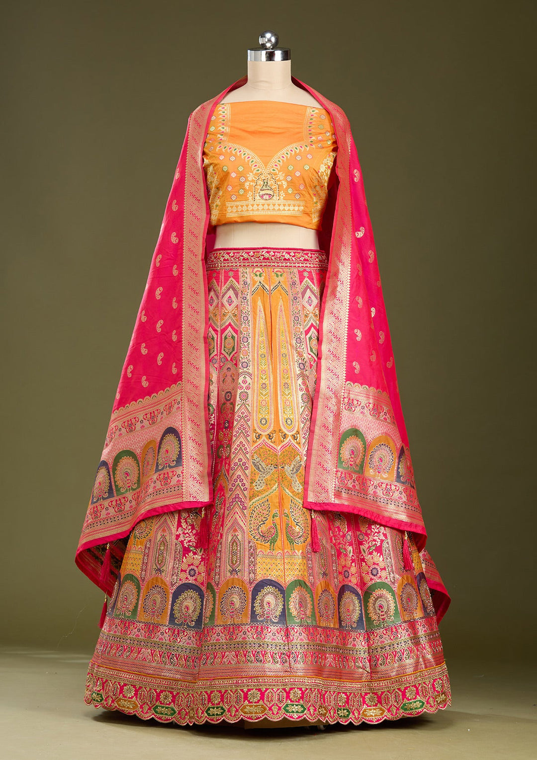 | Orange Cording Banarasi Readymade Lehenga | $549.00 USD | |