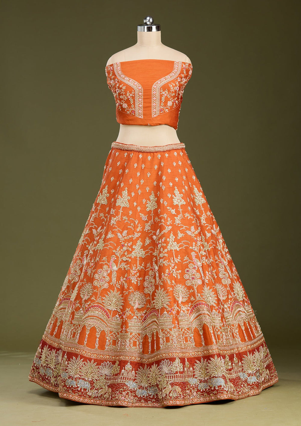 | Red Cutdana Raw Silk Semi-Stitched Lehenga | $549.00 USD | |