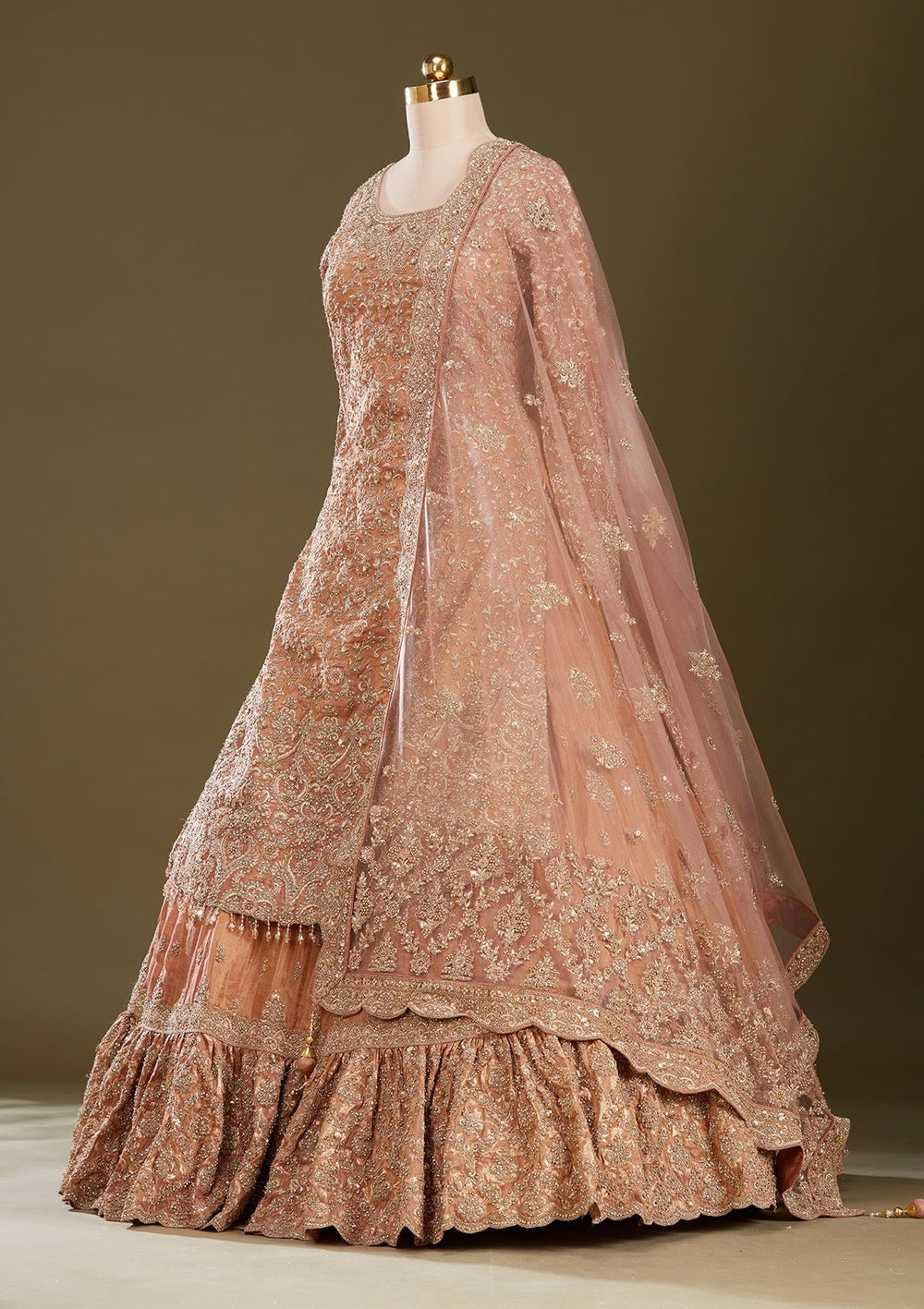 At Koskii, you will find stonework bridal lehenga in net, georgette, raw silk, etc., fabrics. Imagine walking down the aisle in a ravishing rani pink bridal lehenga studded with sparkling stone all over and making every eye stuck at your matchless charm.