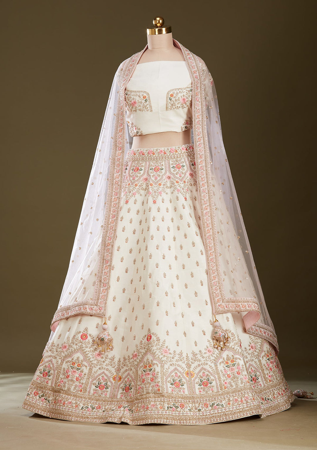| Off White Zardozi (Gold) Raw Silk Readymade Lehenga | $799.00 USD | |
