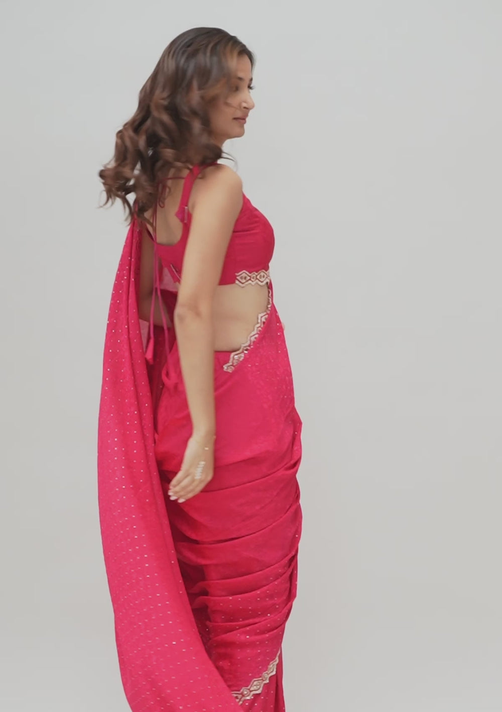 | Rani Pink Stonework Semi Crepe Saree | $103.00 USD | |
