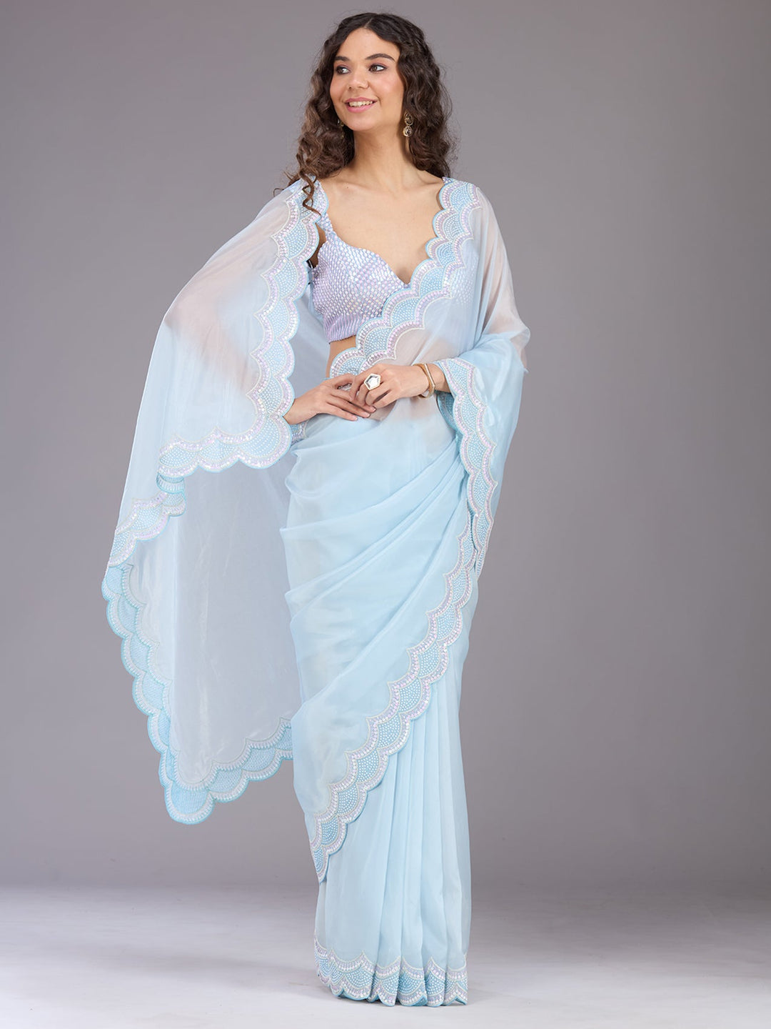 | Sky Blue Sequins Tissue Saree | $159.00 USD | |