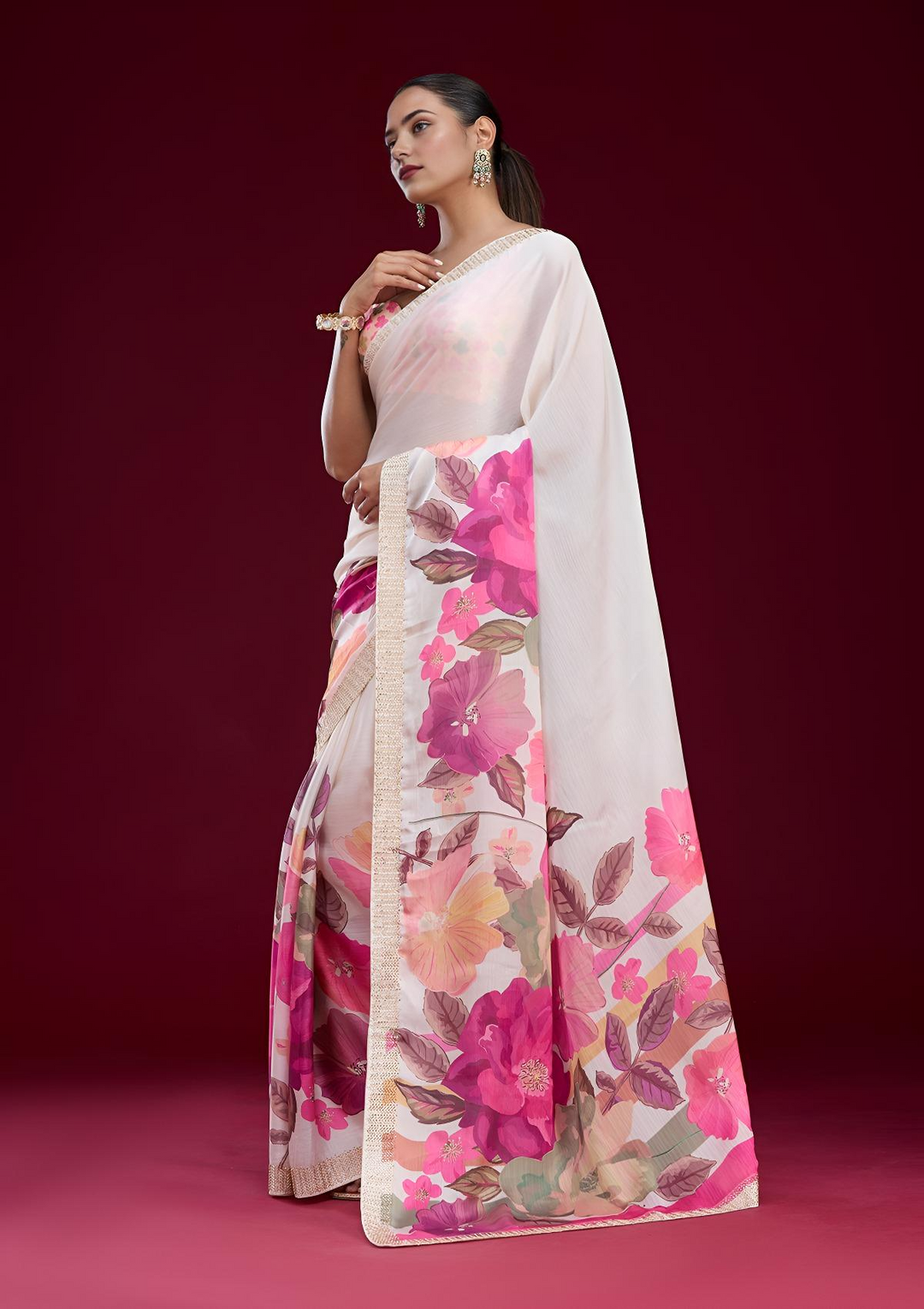 | Cream Cutdana Chiffon Saree | $71.00 USD | |