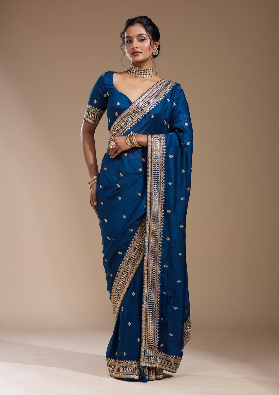 | Peacock Blue Cutdana Tissue Saree | $79.00 USD | |