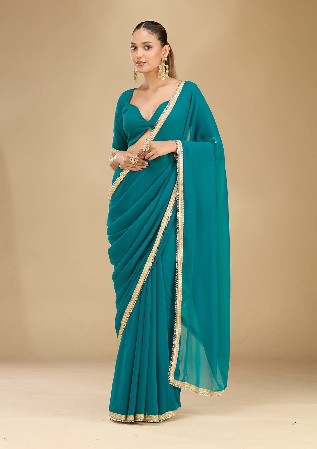 | Rama Green Mirrorwork Georgette Saree | $49.00 USD | |