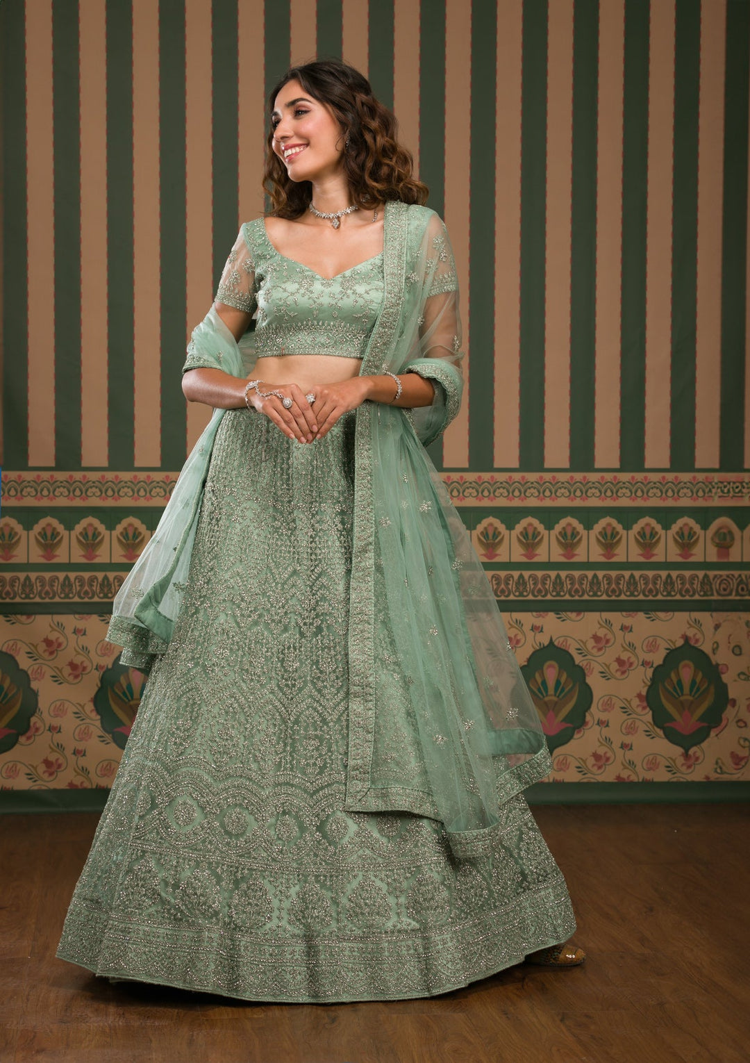 | Purple Pearlwork Georgette Readymade Lehenga | $359.00 USD | |
