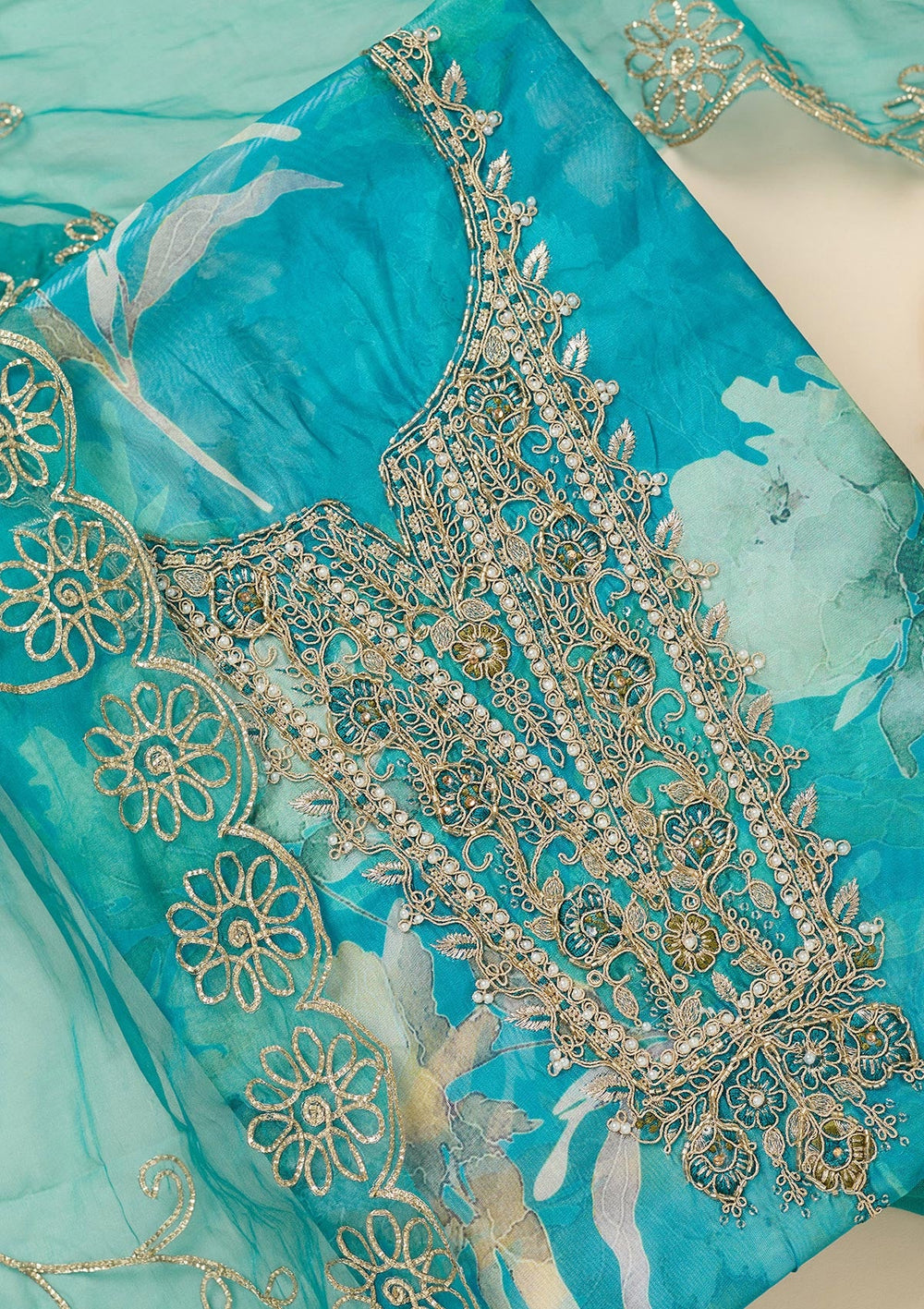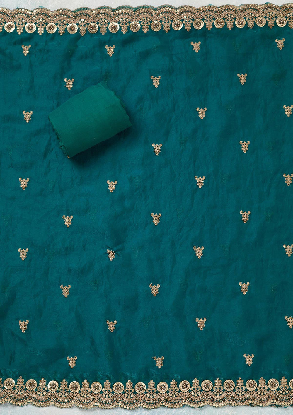 Rama Green Cording Organza Unstitched Salwar Suit | $129.00 USD | |