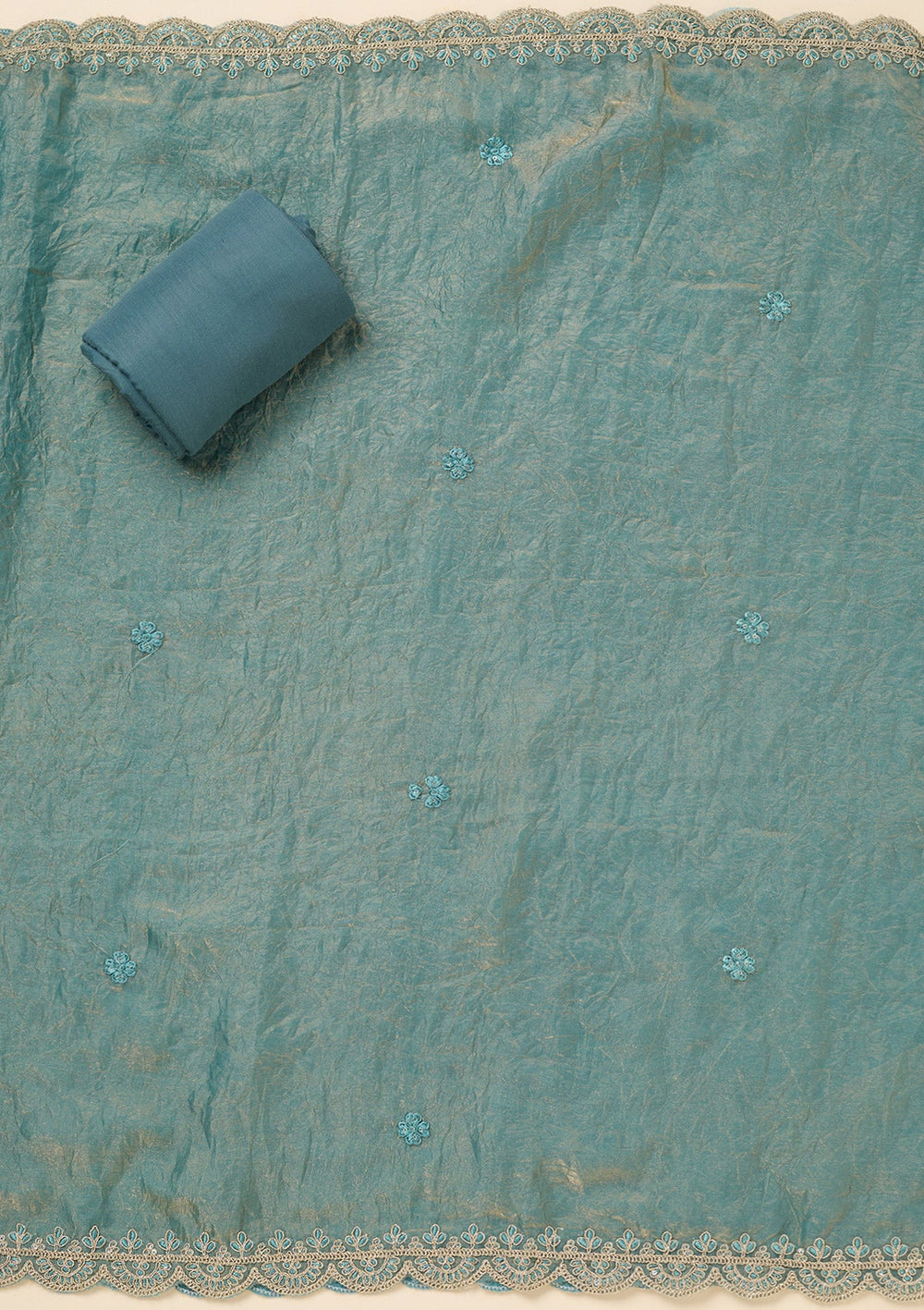 Bottle Green Threadwork Tissue Unstitched Salwar Suit | $119.00 USD | |