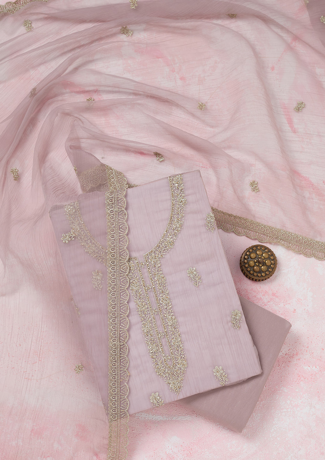| Pink Zariwork (Gold) Chiffon Unstitched Salwar Suit | $71.00 USD | |
