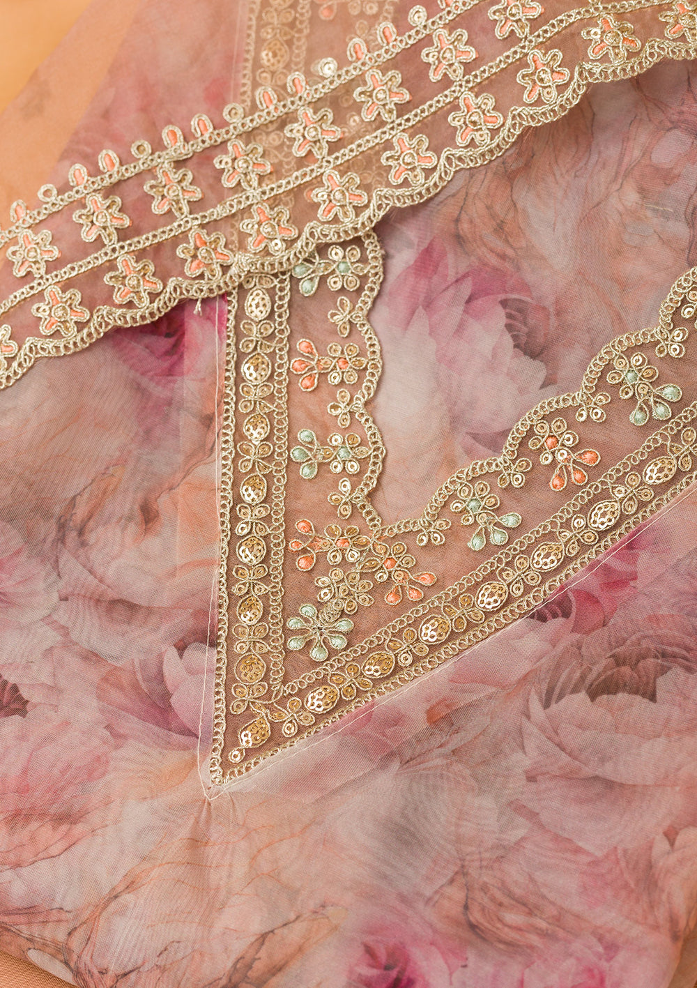 | Pink Printed Organza Unstitched Salwar Suit | $55.00 USD | |