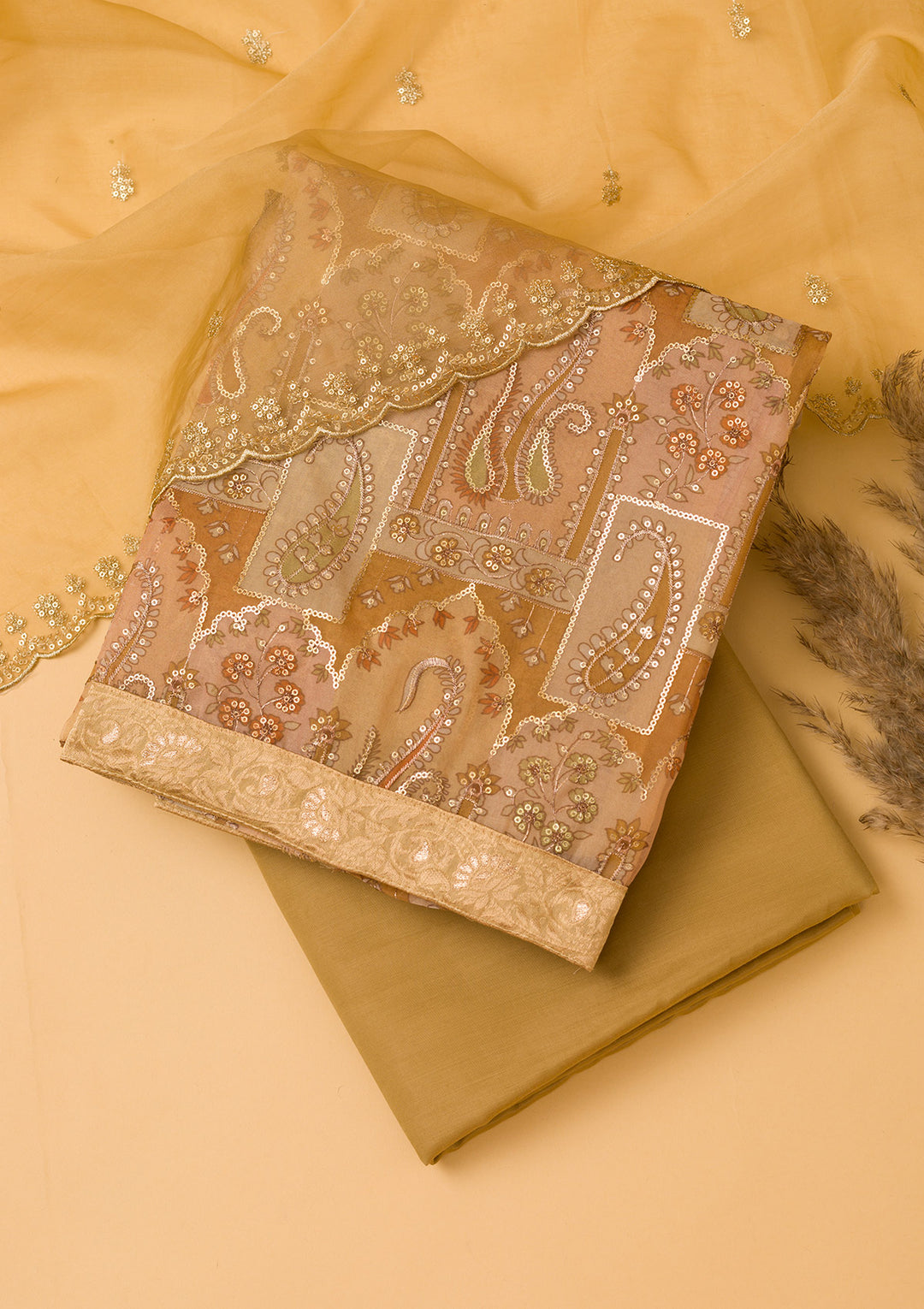 | Beige Threadwork Organza Unstitched Salwar Suit | $95.00 USD | |
