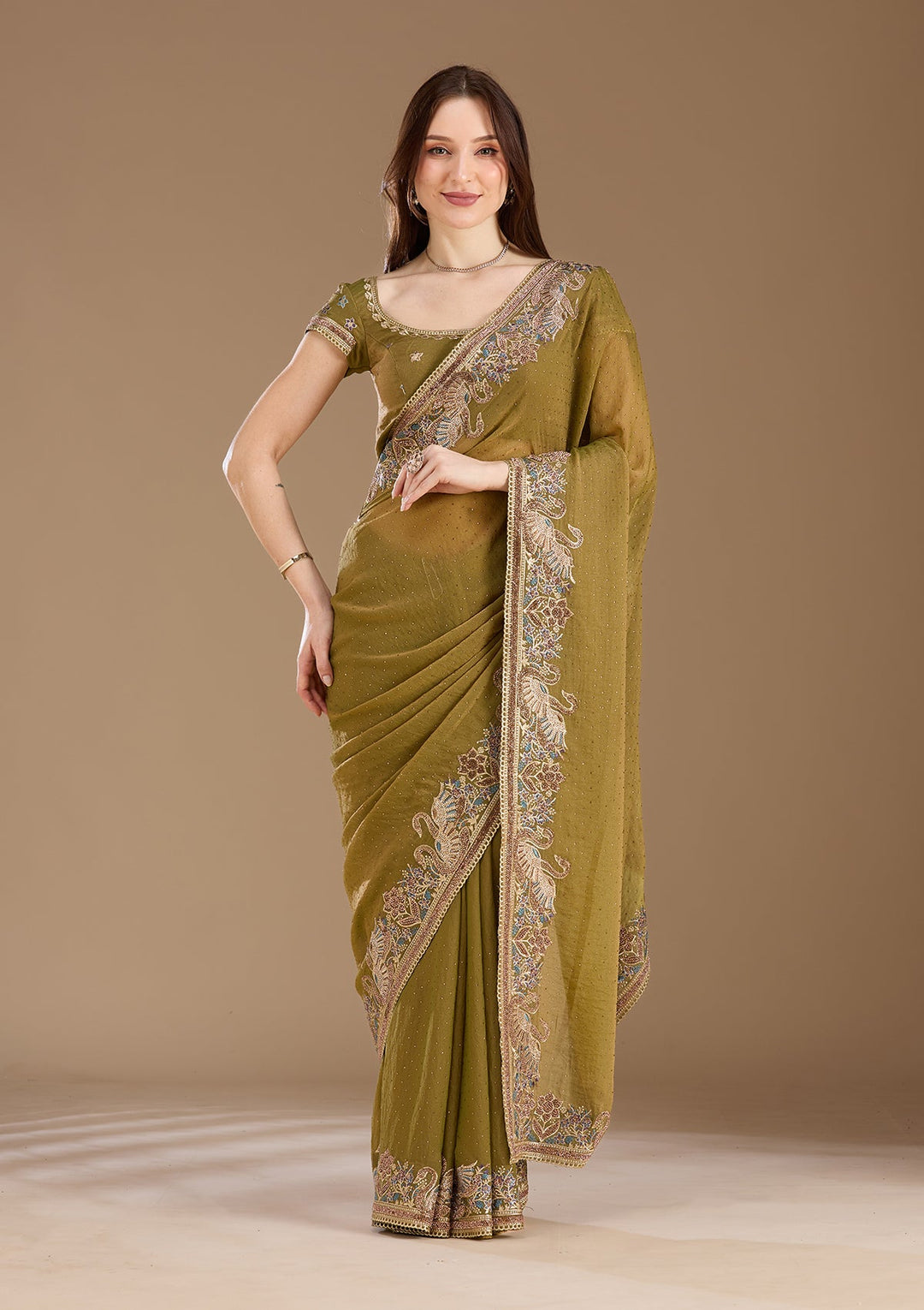 | Onion Pink Threadwork Tissue Saree | $149.00 USD | |