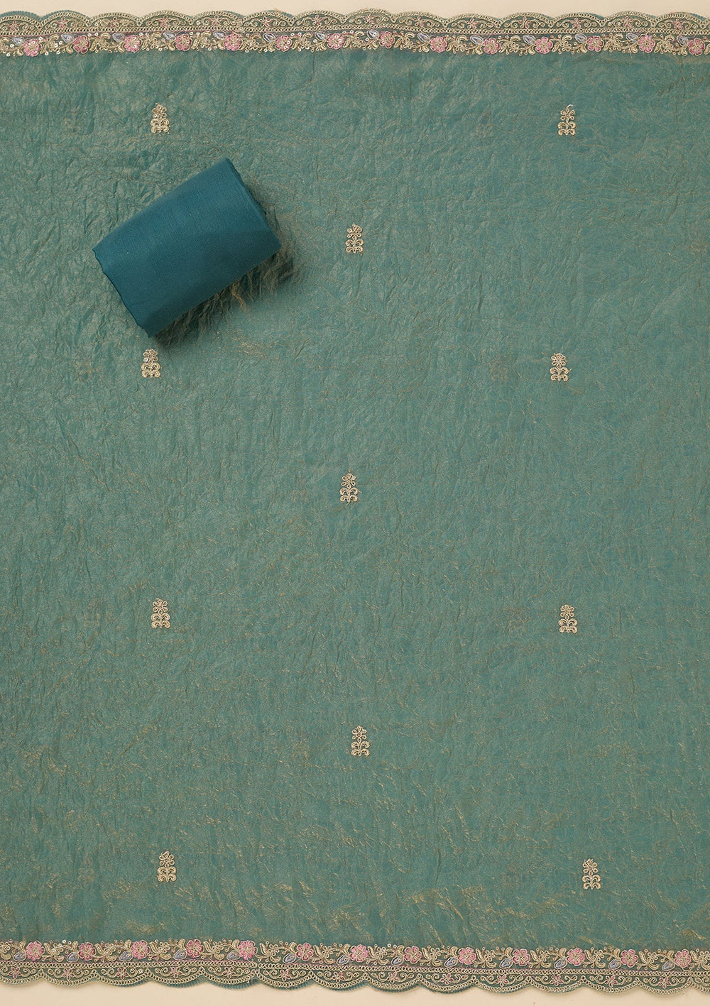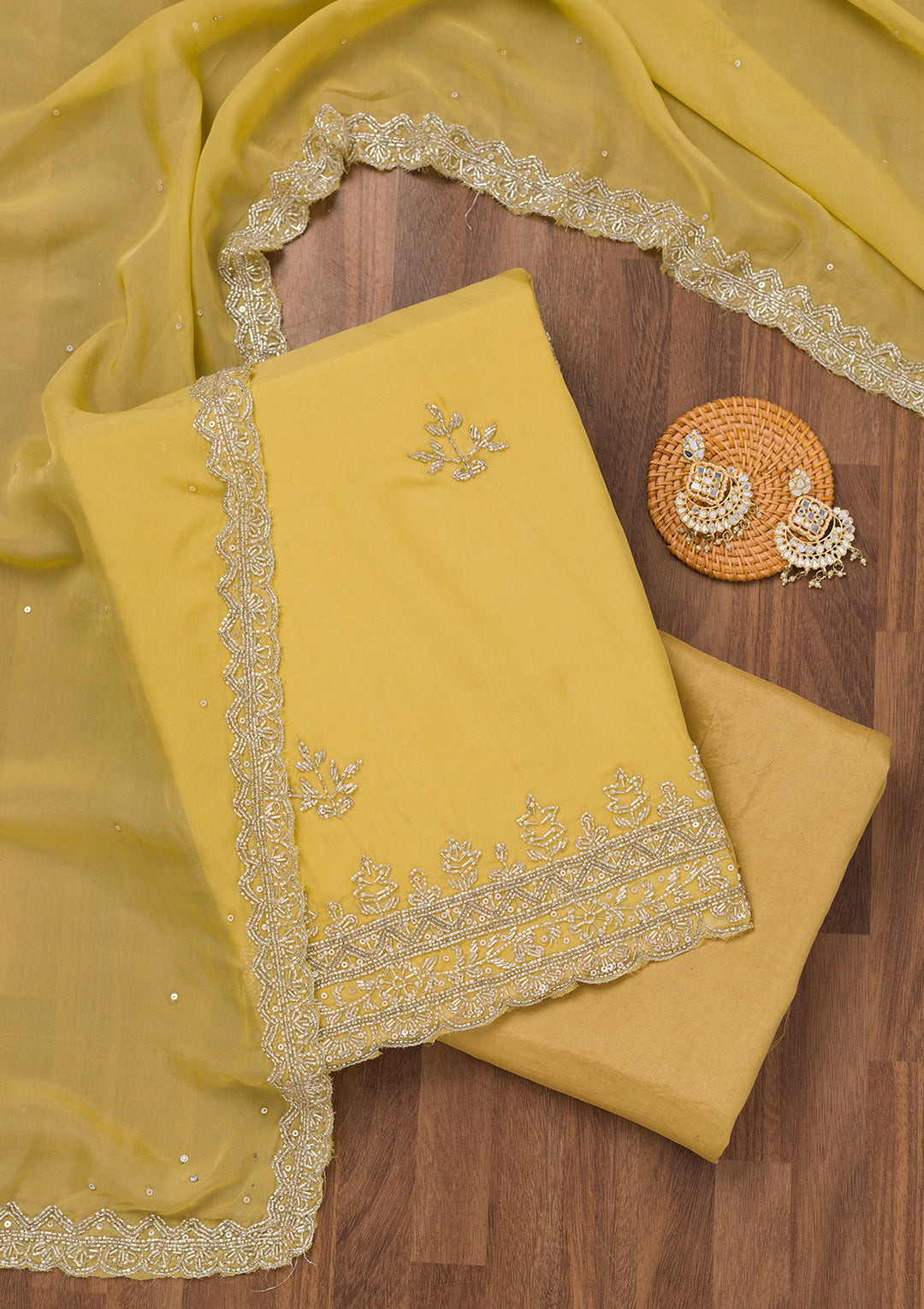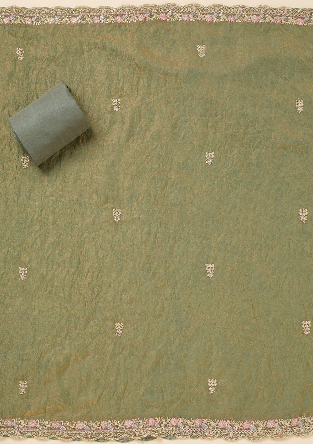 | Parrot Green Stonework Tissue Unstitched Salwar Suit | $95.00 USD | |
