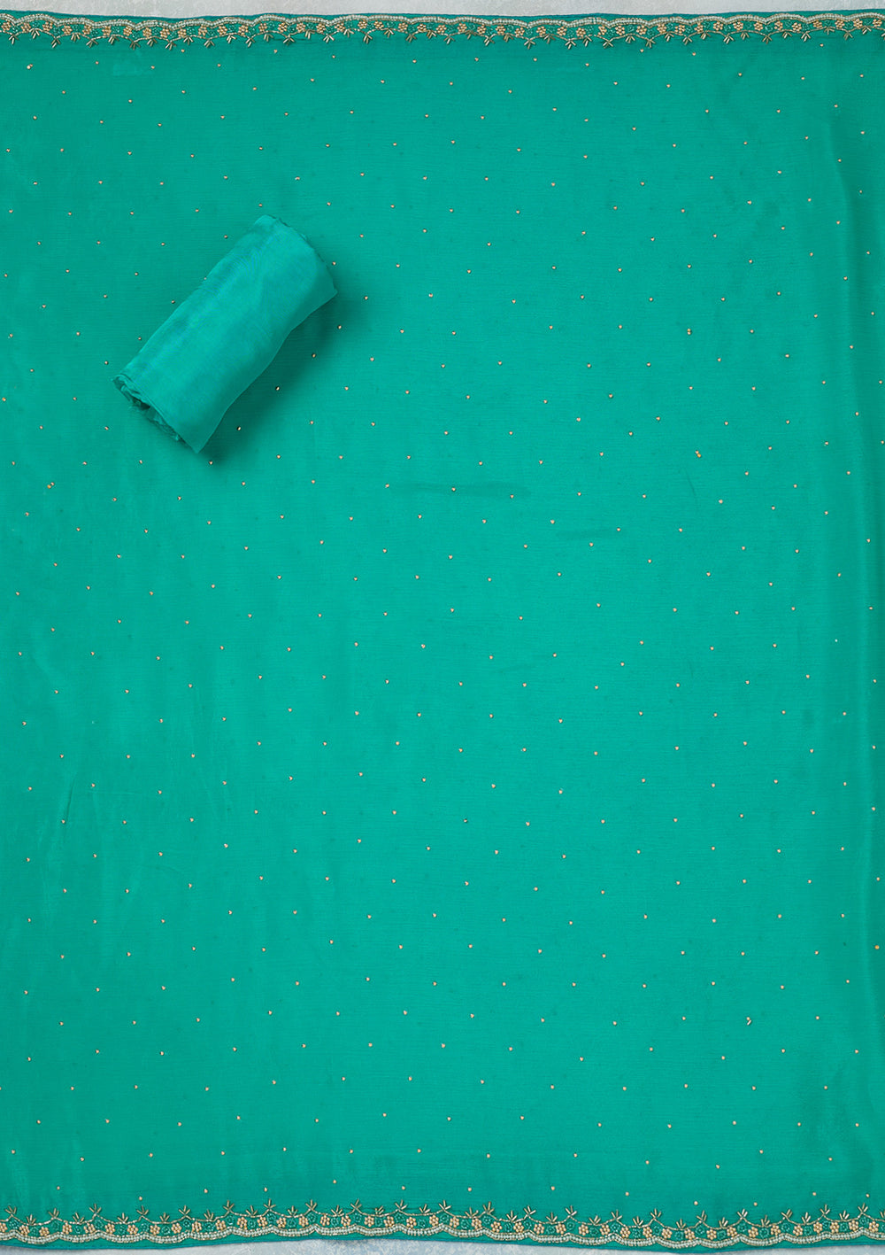 | Rama Green Threadwork Tissue Saree | $151.00 USD | |