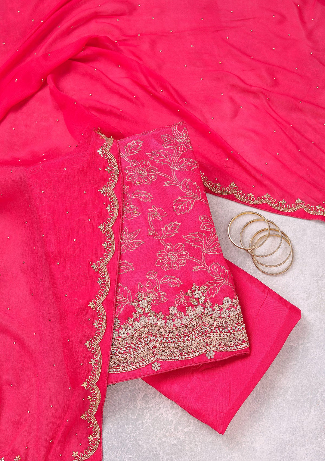 | Rani Pink Zariwork (Gold) Georgette Unstitched Salwar Suit | $209.00 USD | |