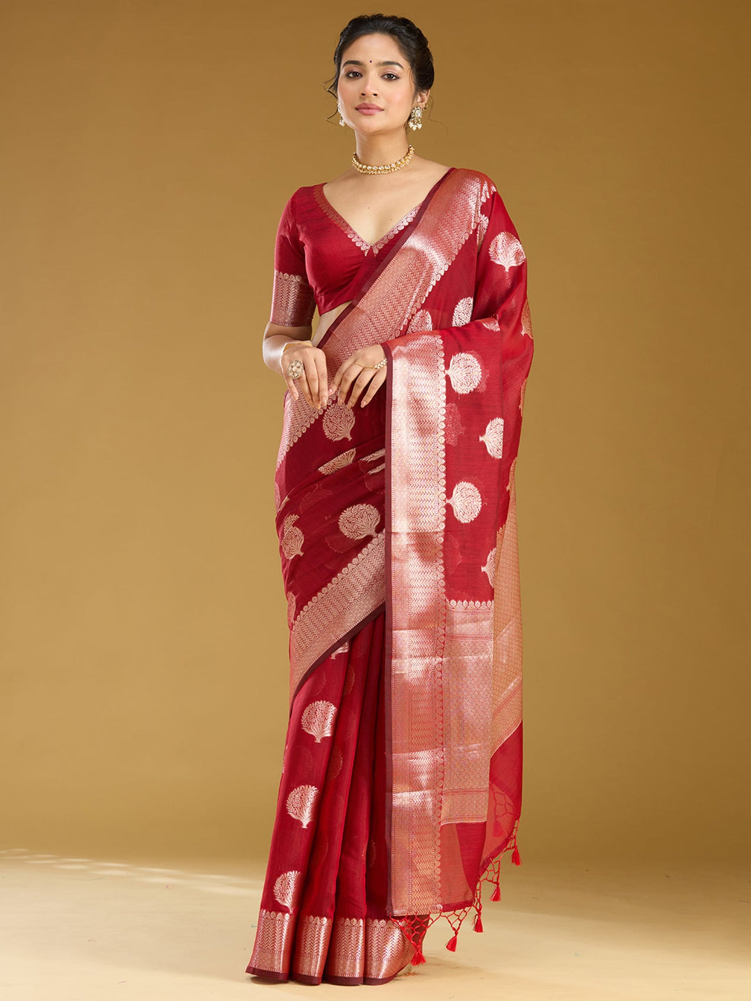 | Onion Pink Zariwork (Gold) Tissue Saree | $109.00 USD | |