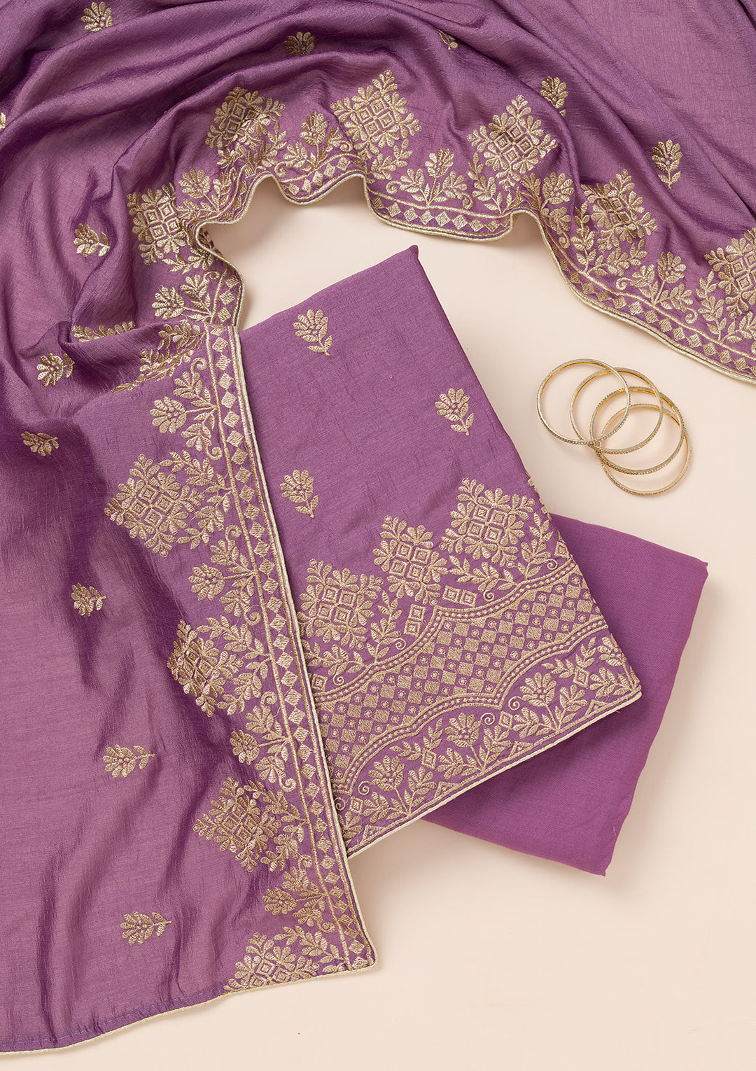 | Lavender Zariwork Art Silk Unstitched Salwar Suit | $47.00 USD | |