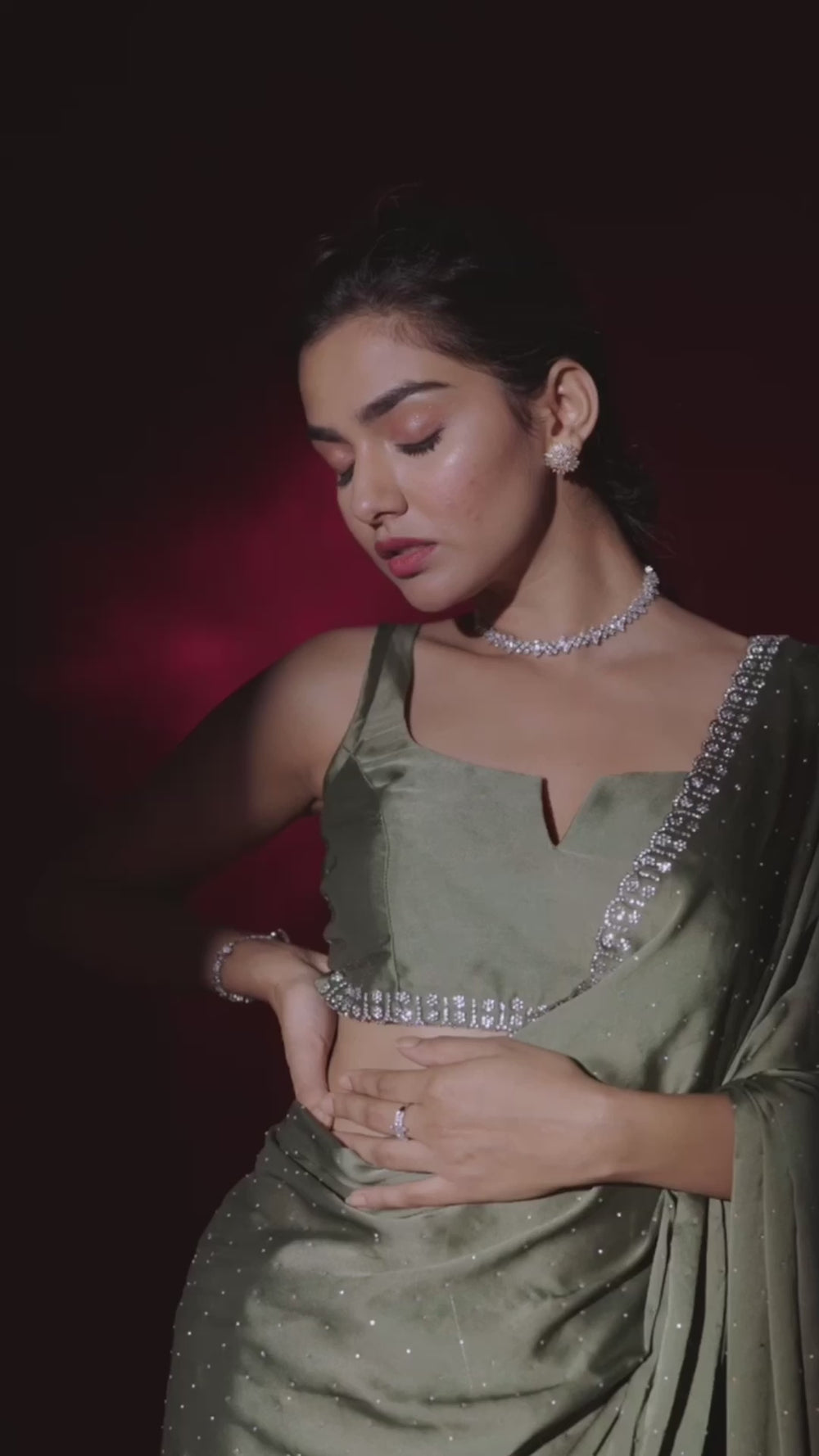 | Leaf Green Stonework Satin Designer Saree | $79.00 USD | |