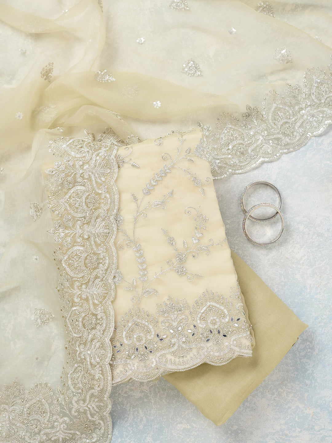 | Off White Threadwork Organza Unstitched Salwar Suit | $249.00 USD | |