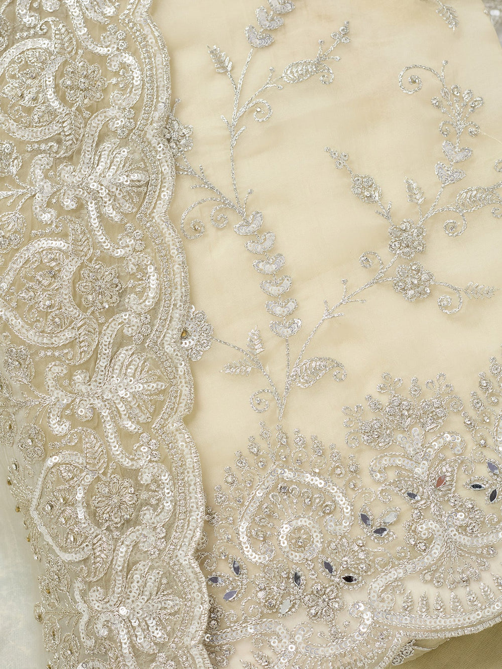 | Off White Zardozi (Gold) Organza Unstitched Salwar Suit | $189.00 USD | |