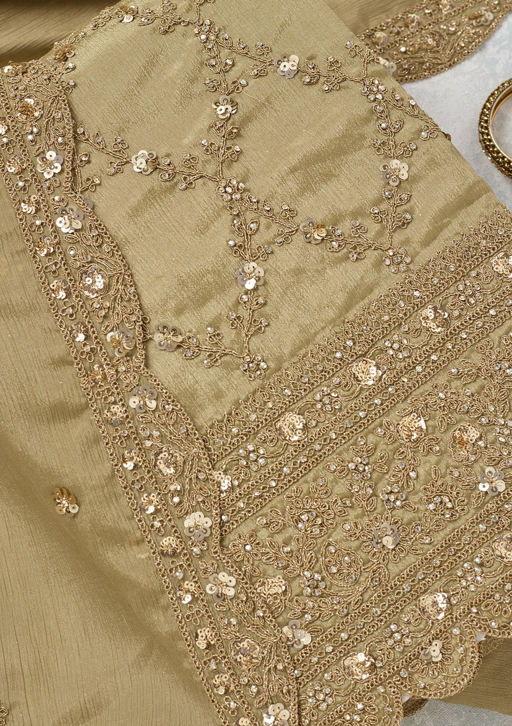 | Pista Green Zariwork (Gold) Chinon Unstitched Salwar Suit | $129.00 USD | |