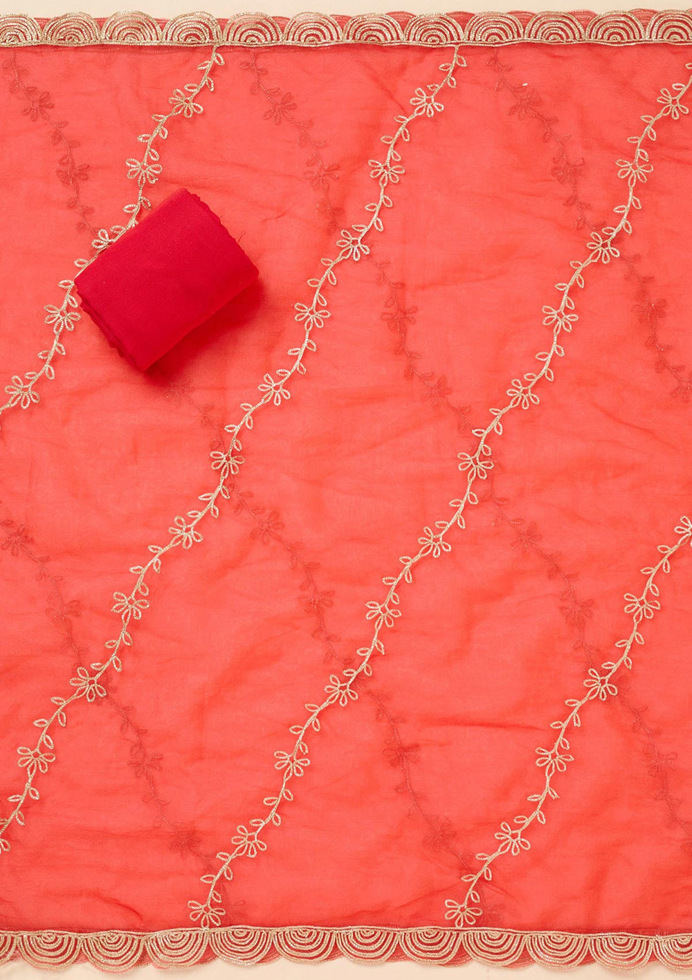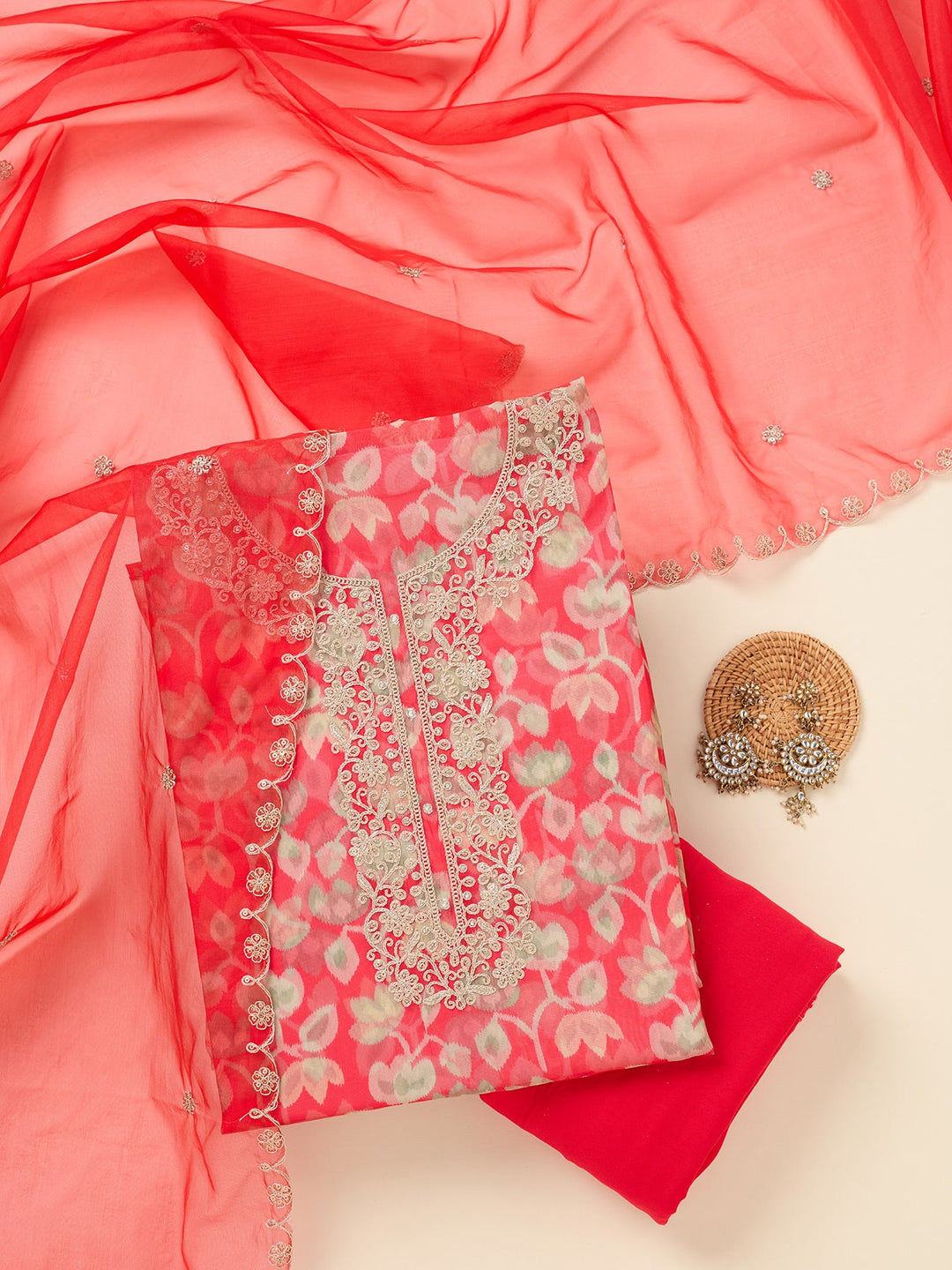 | Red Threadwork Georgette Unstitched Salwar Suit | $71.00 USD | |