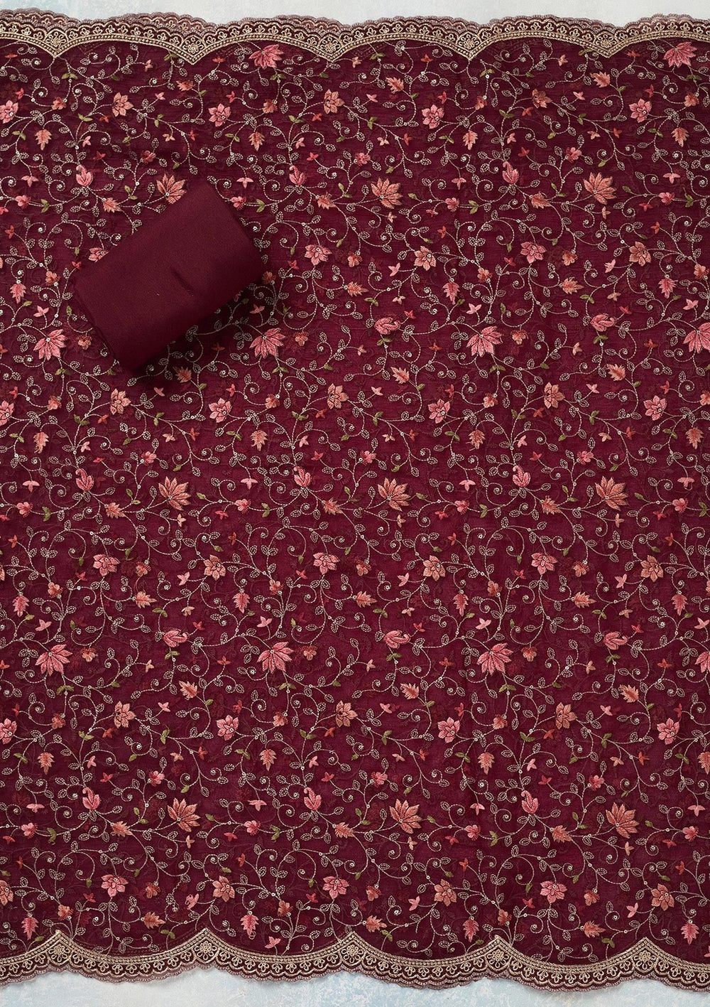 | Maroon Zariwork Raw Silk Unstitched Salwar Suit | $55.00 USD | |
