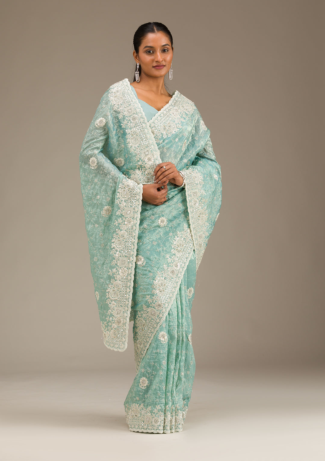 | Grey Pearlwork Tissue Saree | $169.00 USD | |