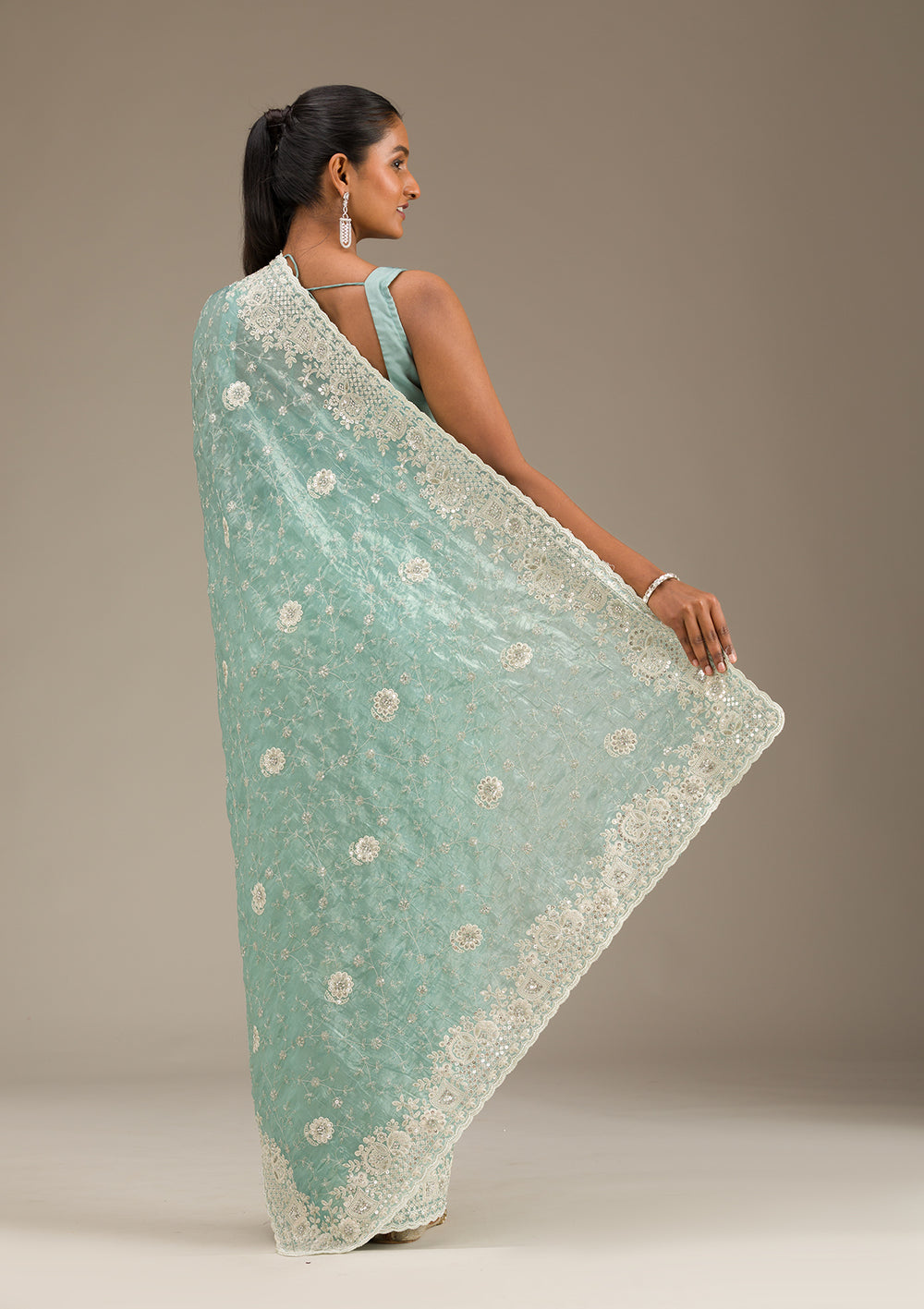 | Bottle Green Sequins Tissue Saree | $139.00 USD | |