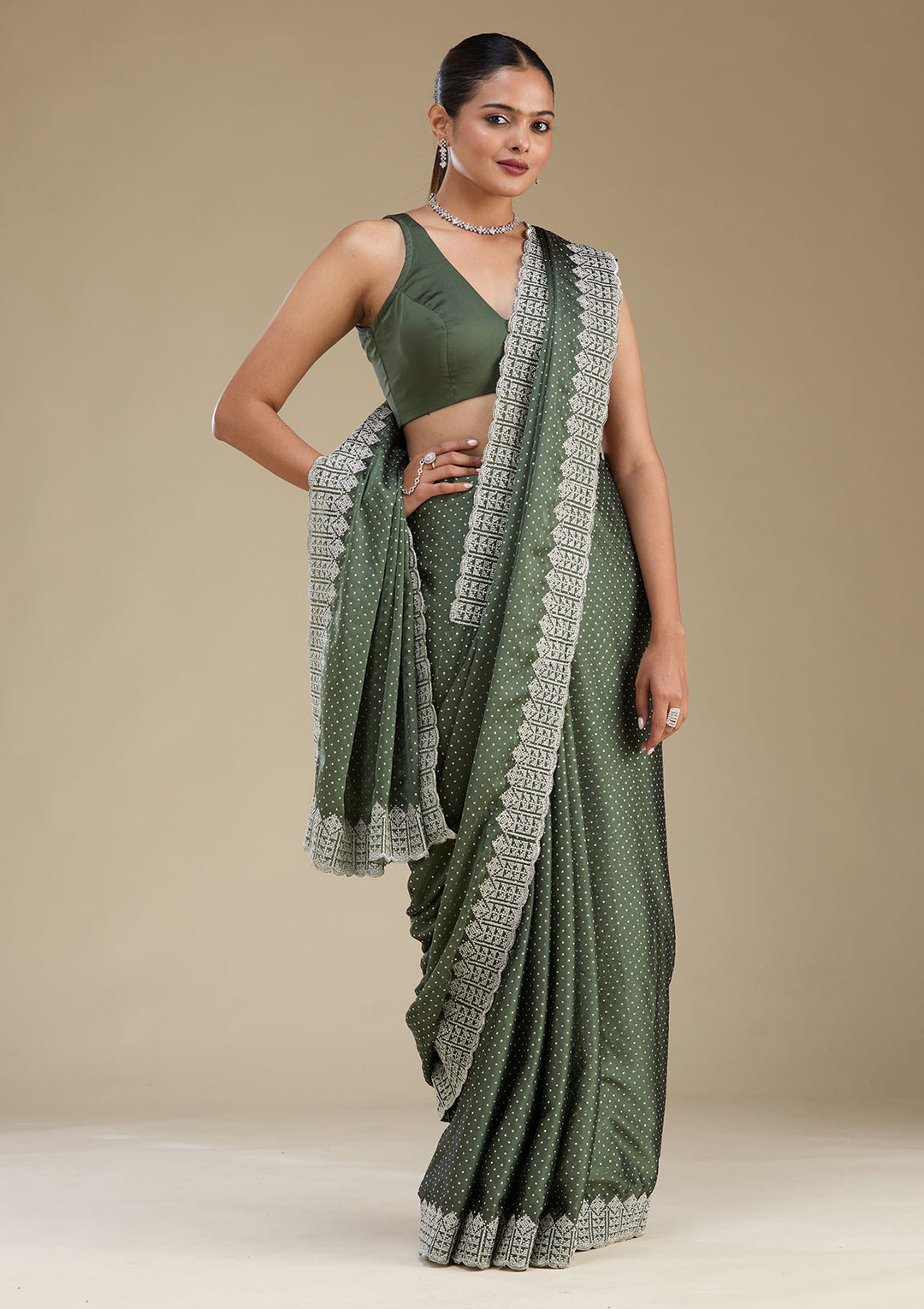 Bottle Green Zariwork (Gold) Soft Raw Silk Saree-Koskii