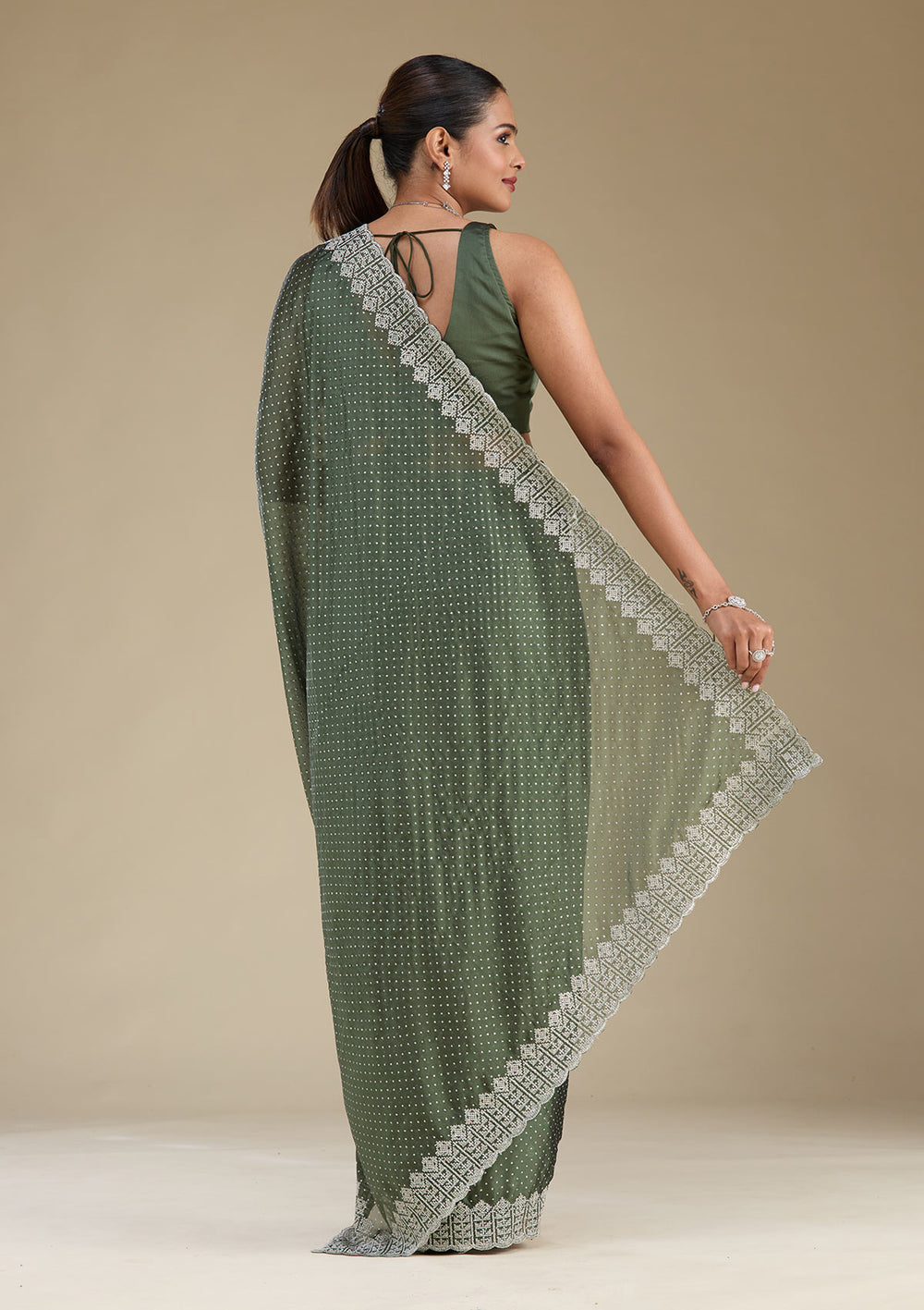 Peacock Blue Stonework Chiffon Saree-Koskii