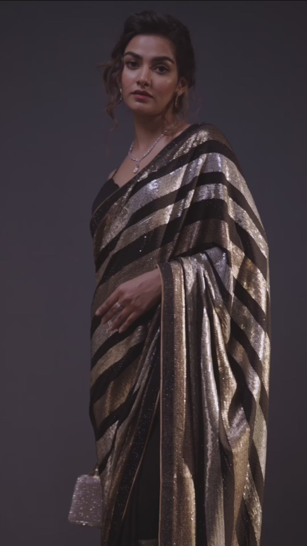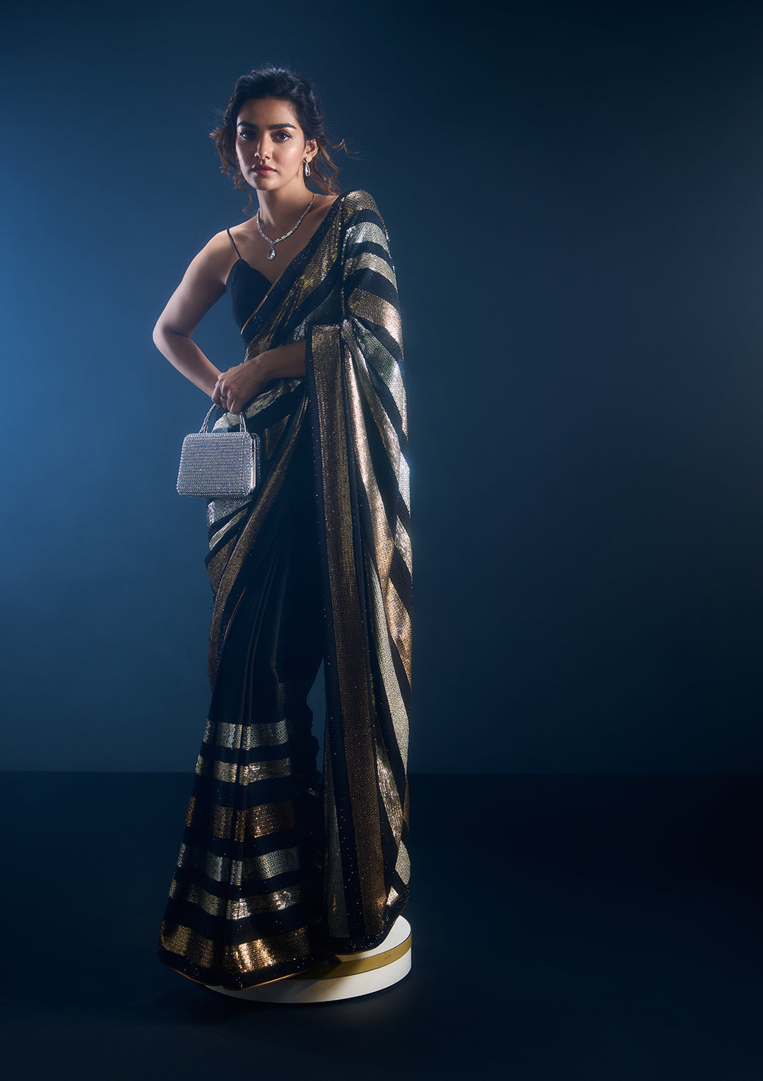 Ombre Navy Blue Stonework Satin Designer Saree | $59.00 USD | |
