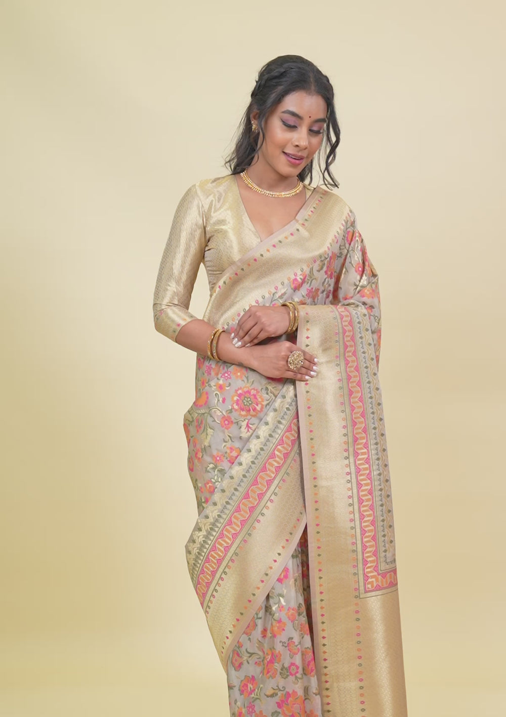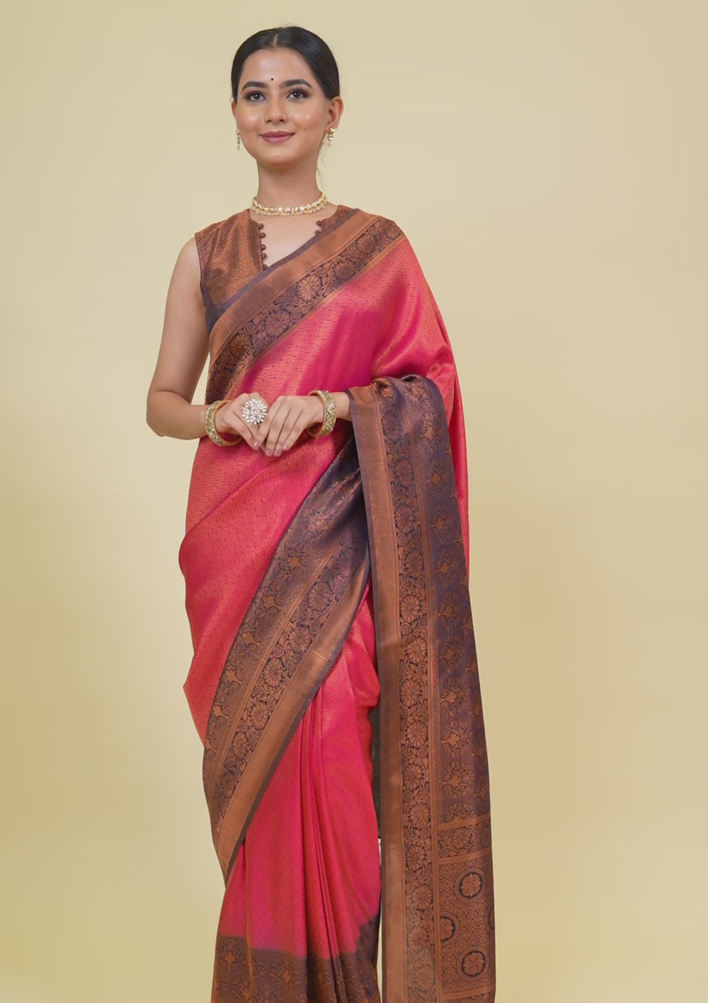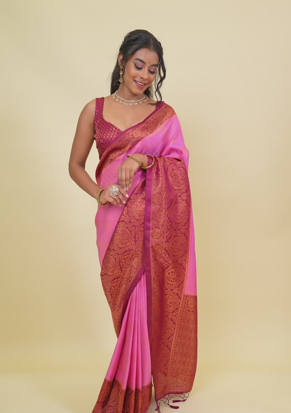 Pink Zariwork Kanjivaram Pure Silk Saree