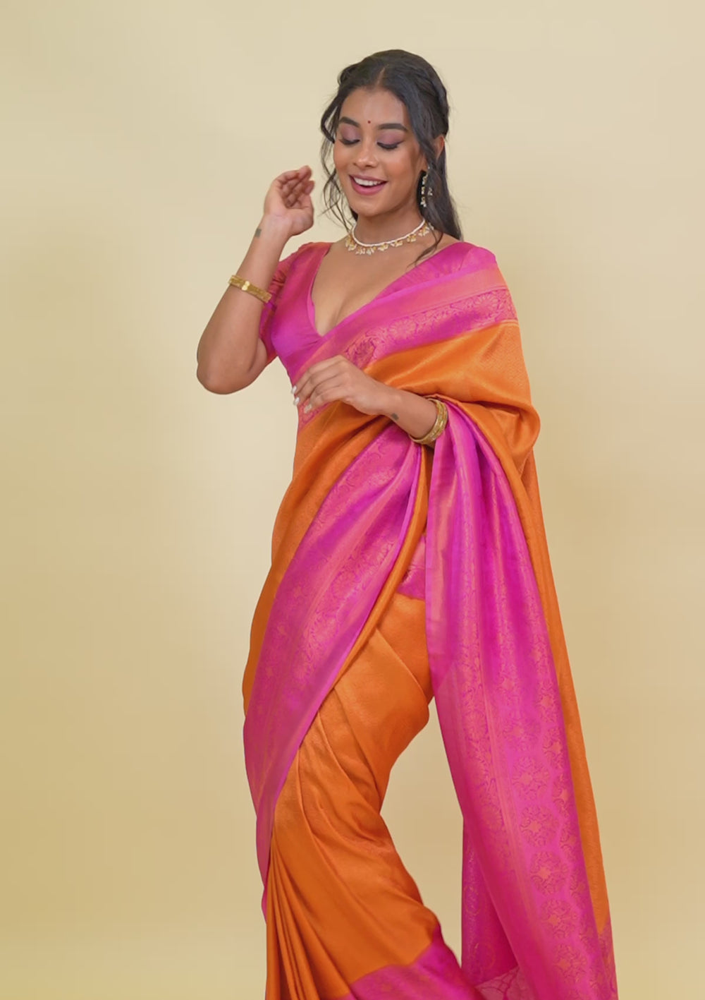 Orange Zariwork Kanjivaram Pure Silk Saree