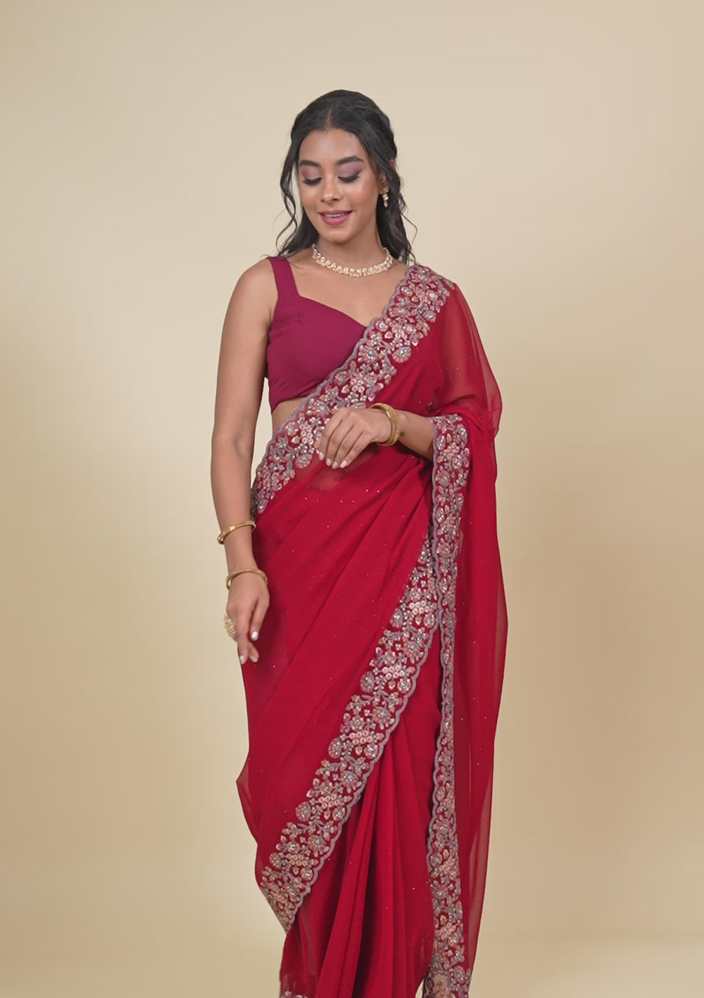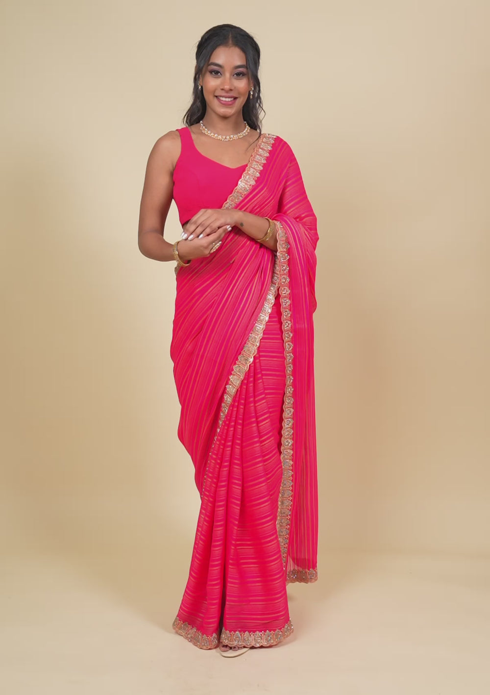Rani Pink Gotapatti Semi Crepe Saree-Koskii