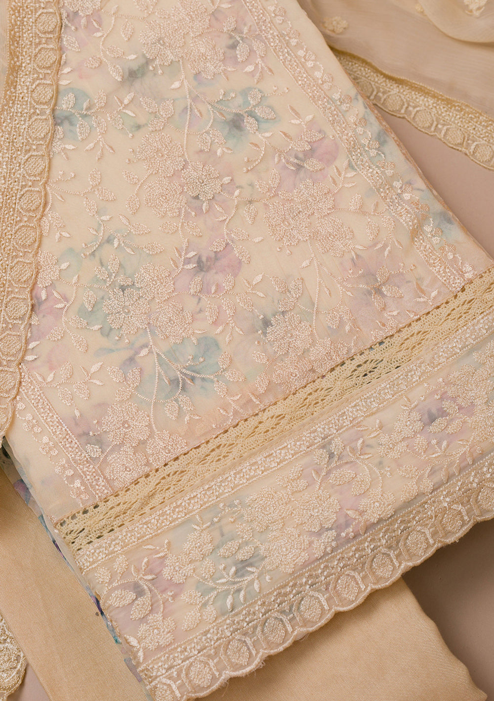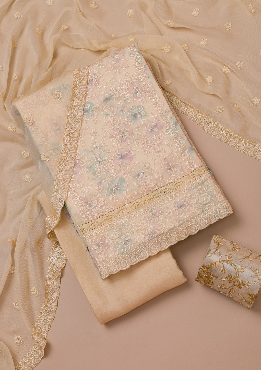 Light Brown Zariwork Raw Silk Unstitched Salwar Suit | $152.00 USD |