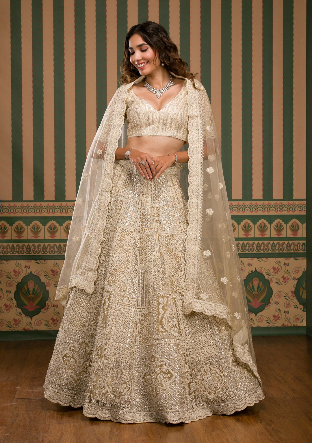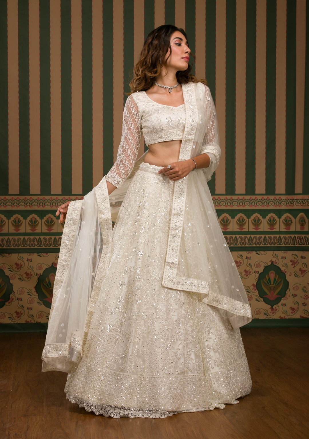 Baby Pink Threadwork Net Semi Stitched Lehenga
