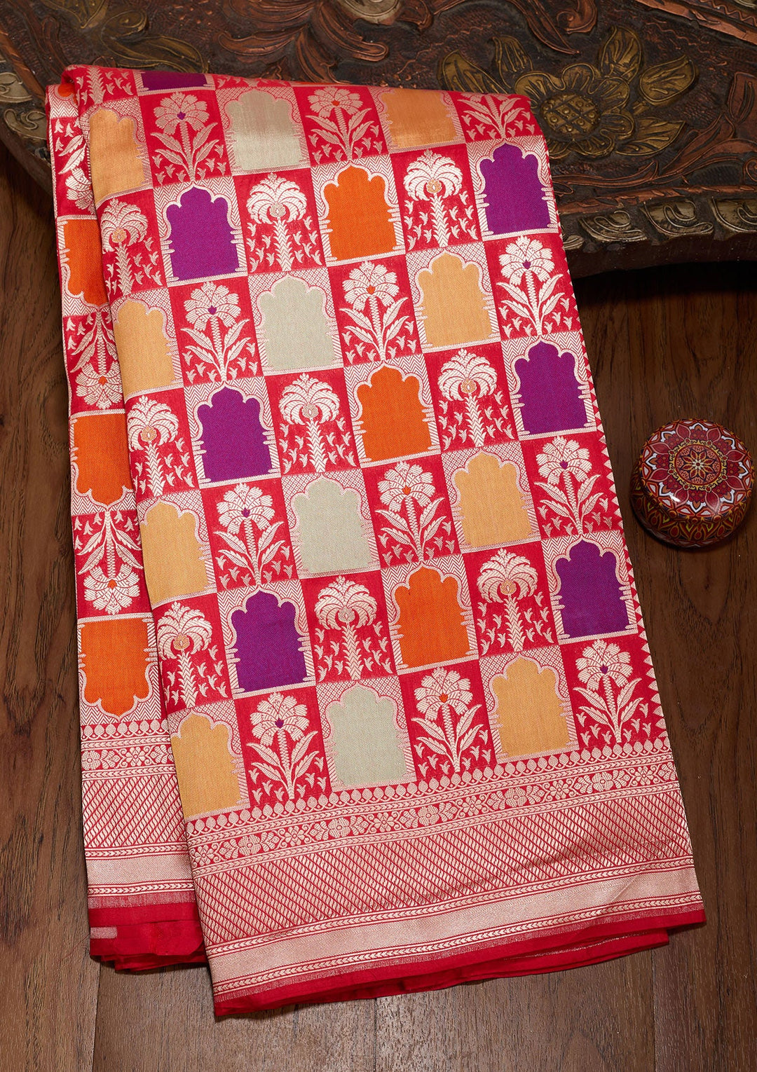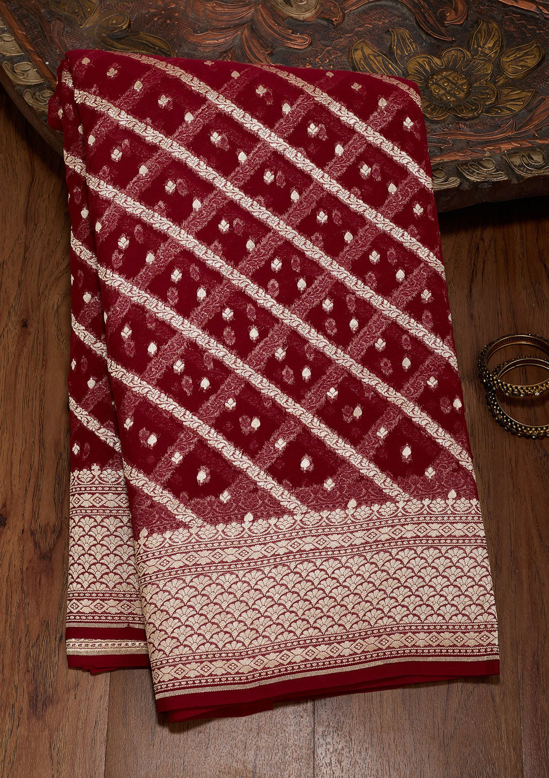 | Red Aariwork Semi Crepe Semi-Stitched Lehenga | $899.00 USD | |