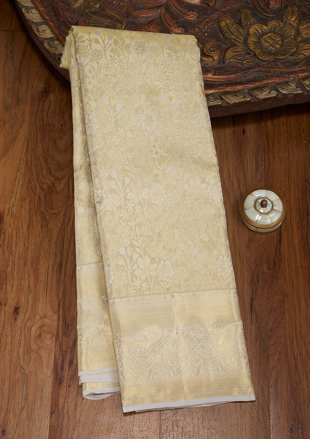 | Cream Zariwork (Gold) Tissue Readymade Salwar Suit | $399.00 USD | |