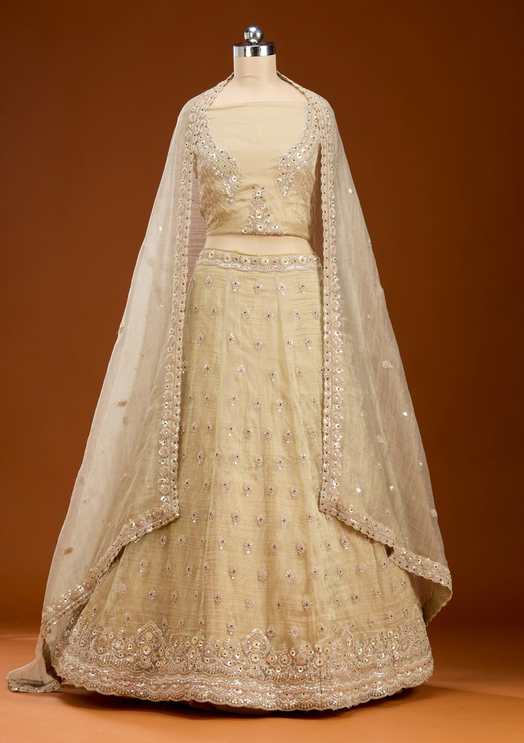 | Mehandi Green Zariwork (Gold) Crepe Readymade Lehenga | $349.00 USD | |