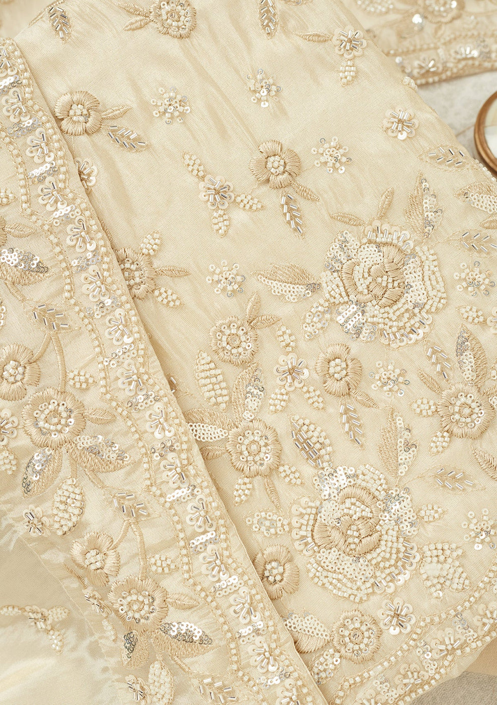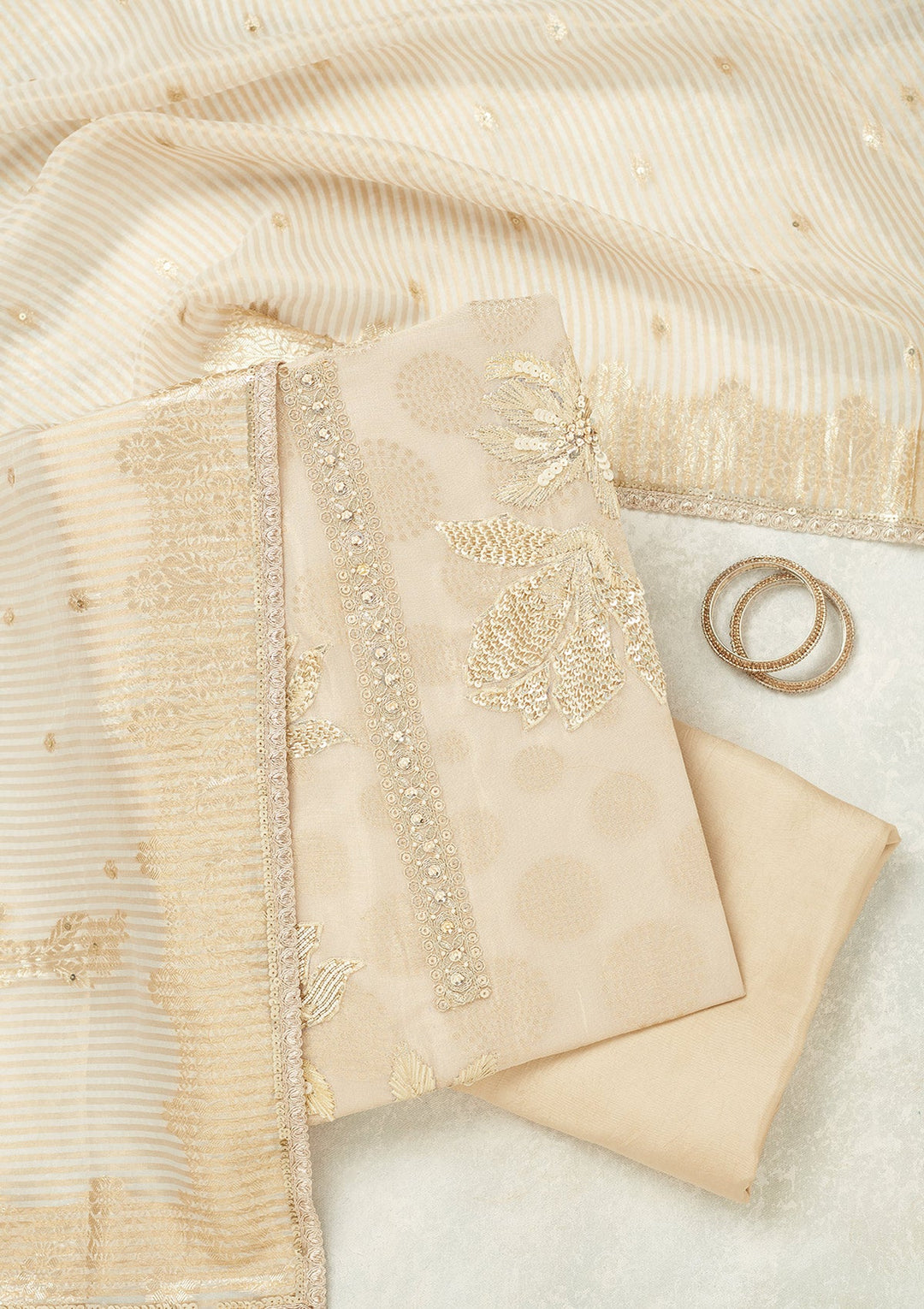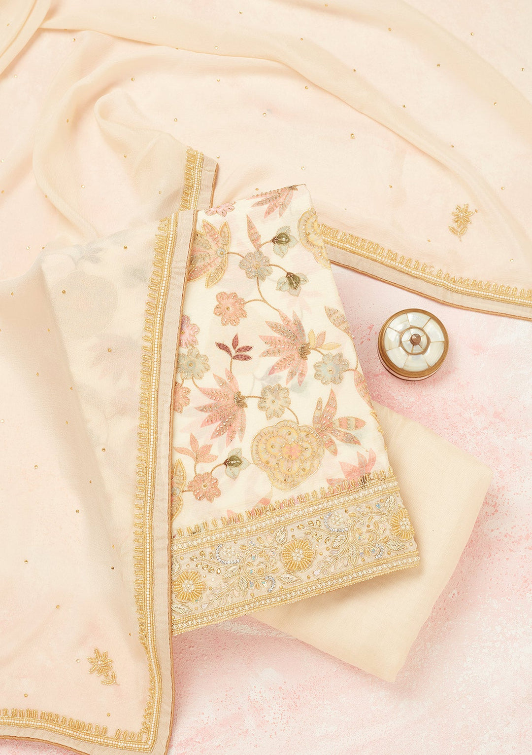 | Cream Cutdana Crepe Unstitched Salwar Suit | $179.00 USD | |