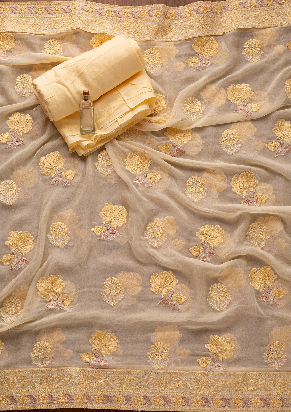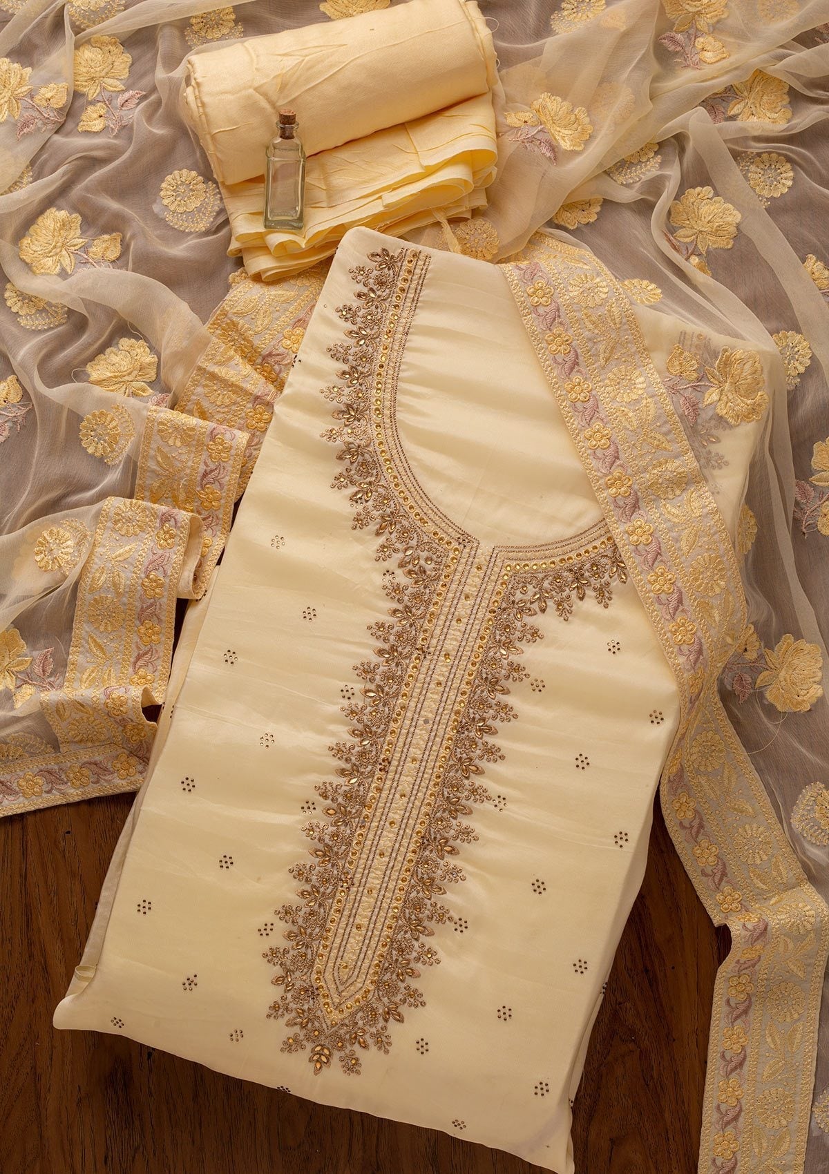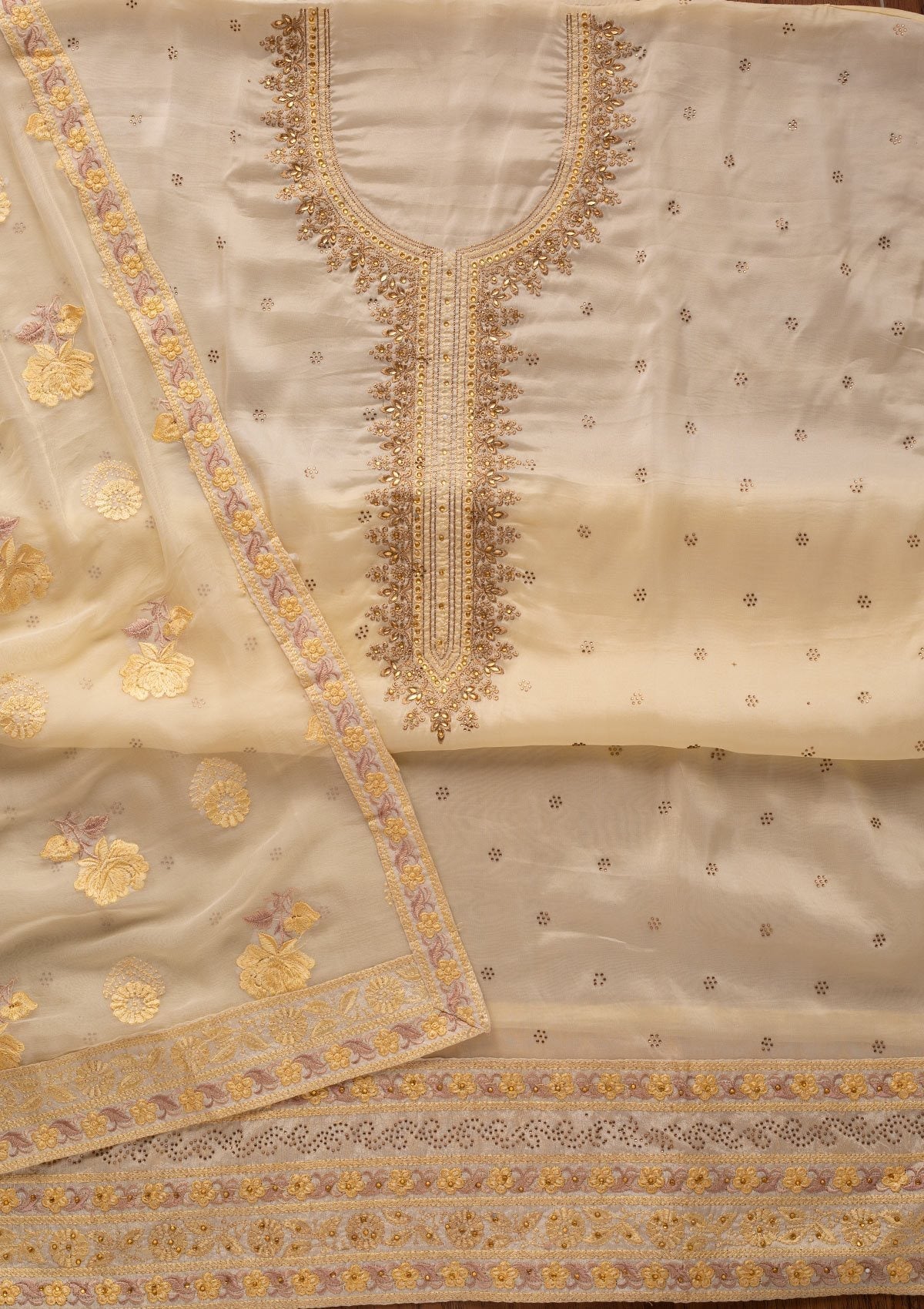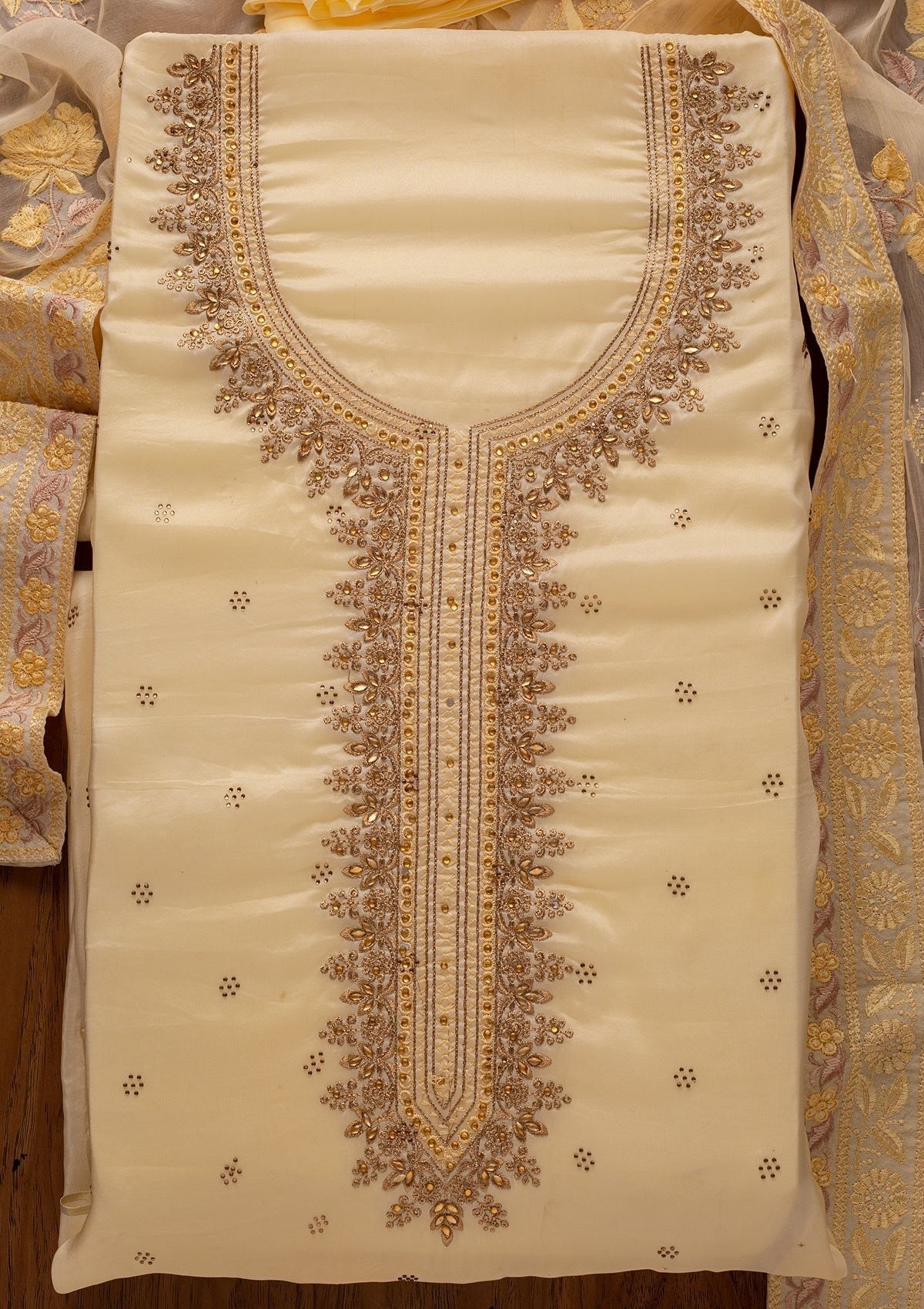Cream Stonework Soft Silk Unstitched Salwar Suit