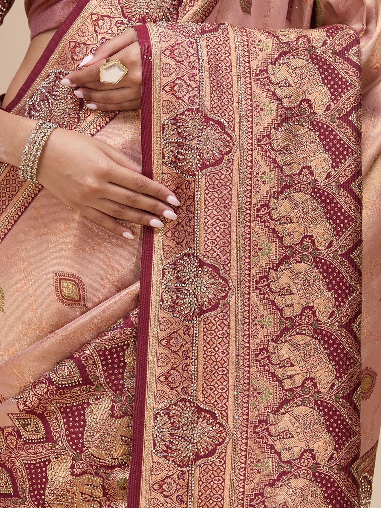 Baby Pink Silk_Saree in Art Silk fabric. The Silk_Saree is elevated with Aariwork embroidery. It comes with an Unstitched blouse. Comes with the Koskii promise of premium quality.