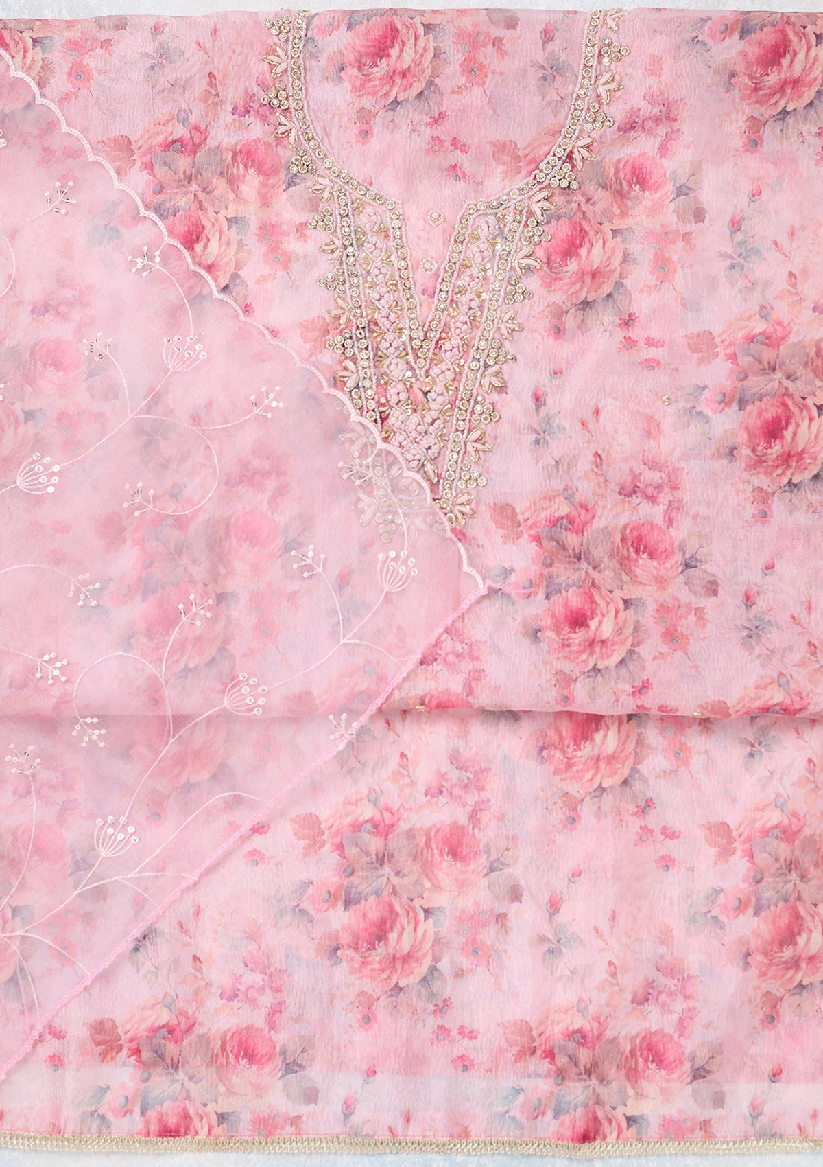 Baby Pink Aariwork Tissue Unstitched Salwar Suit