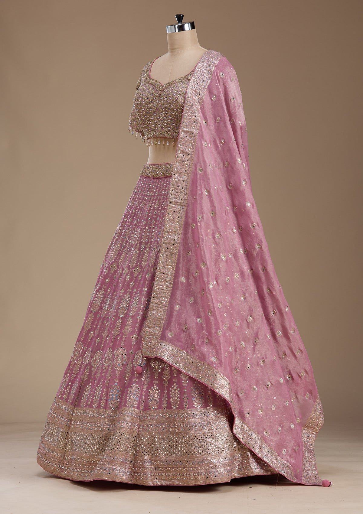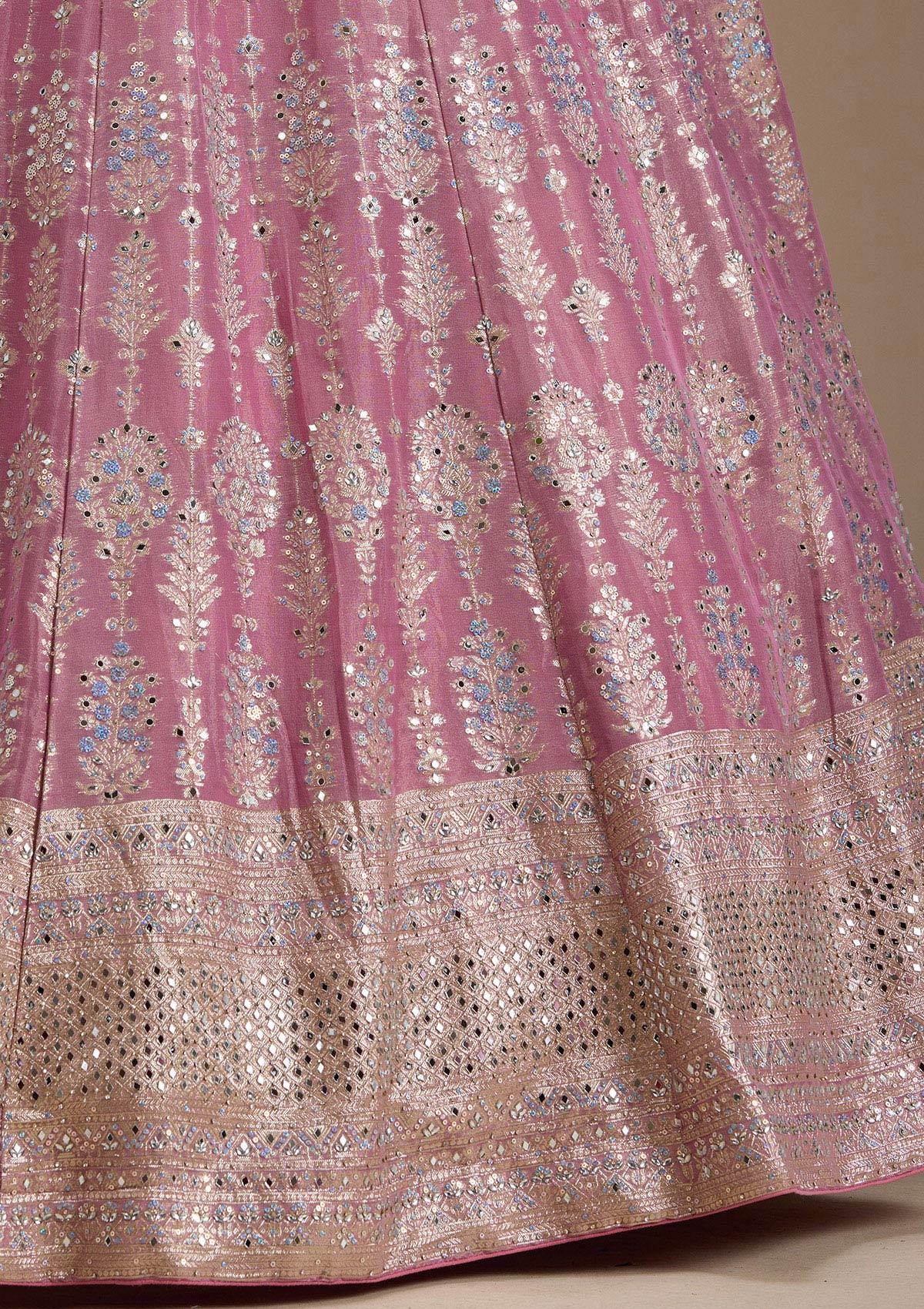 Baby Pink Mirrorwork Banarasi Readymade Lehenga