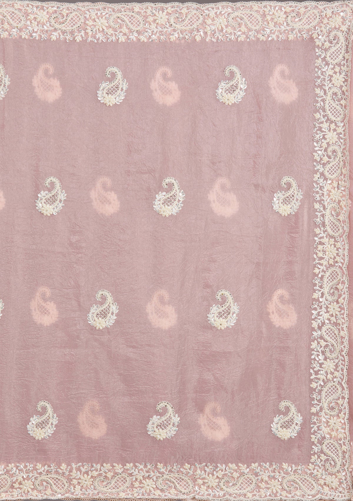 Baby Pink Pearlwork Tissue Saree