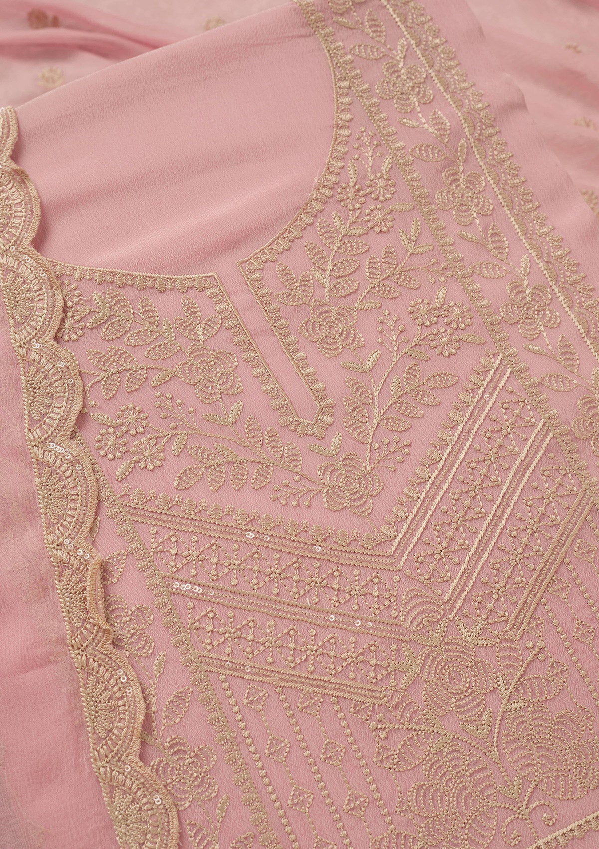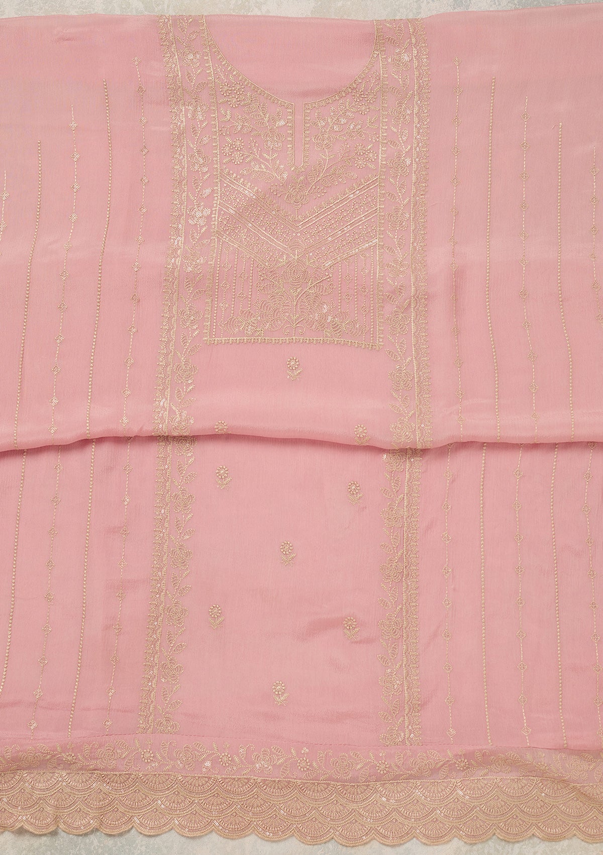 Baby Pink Threadwork Chinon Unstitched Salwar Suit