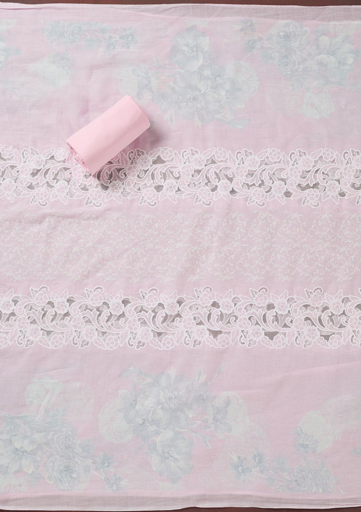 Baby Pink Threadwork Cotton Unstitched Salwar Suit