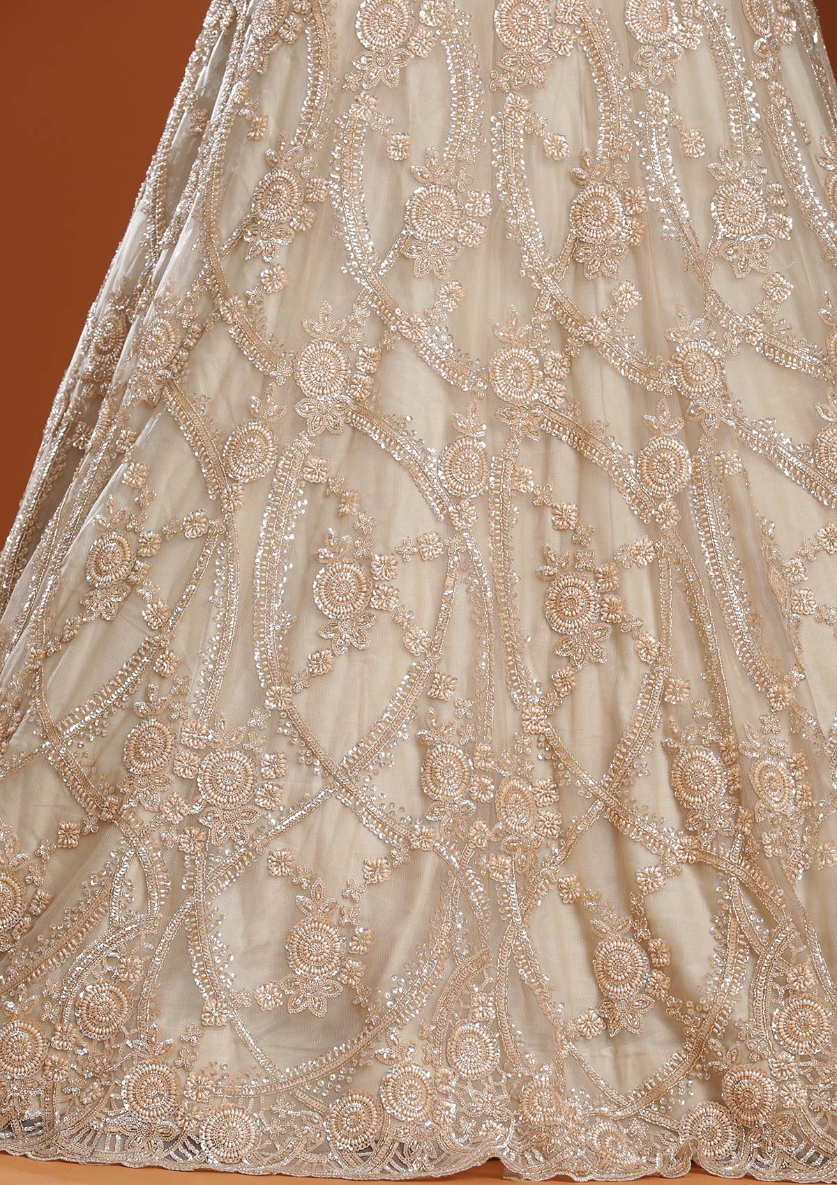 Beige Cutdana Net Readymade Lehenga